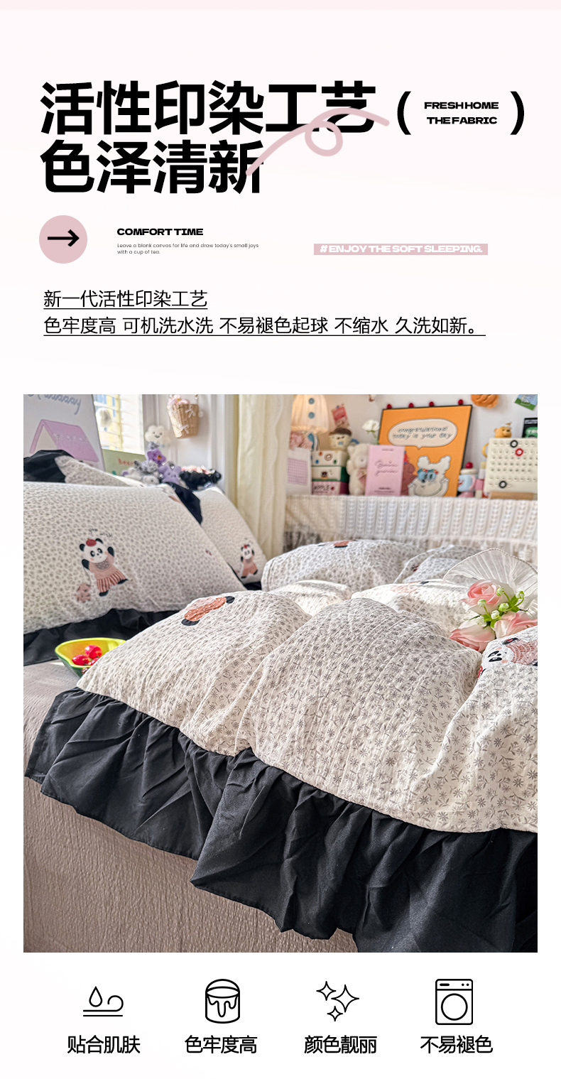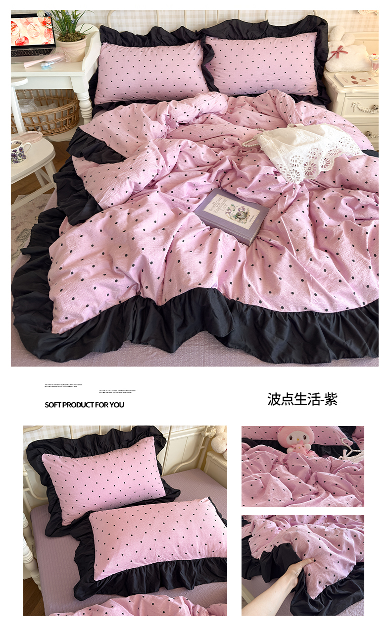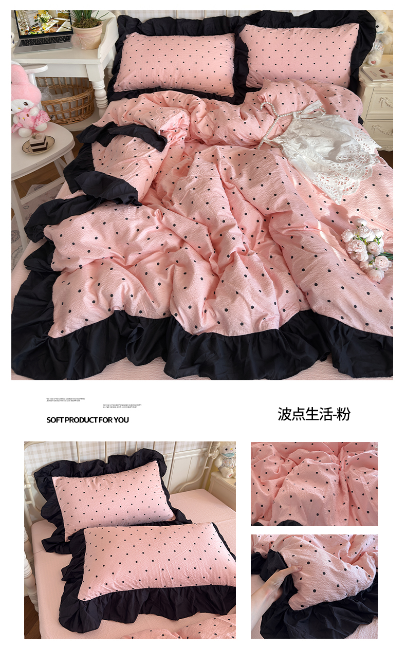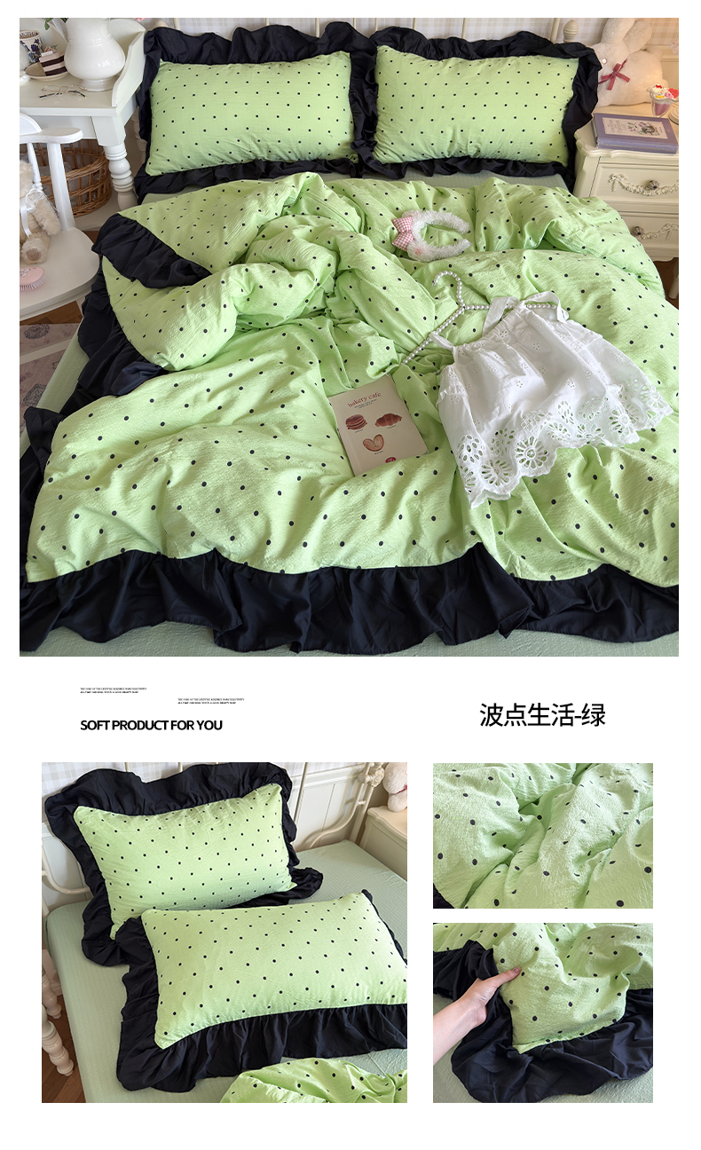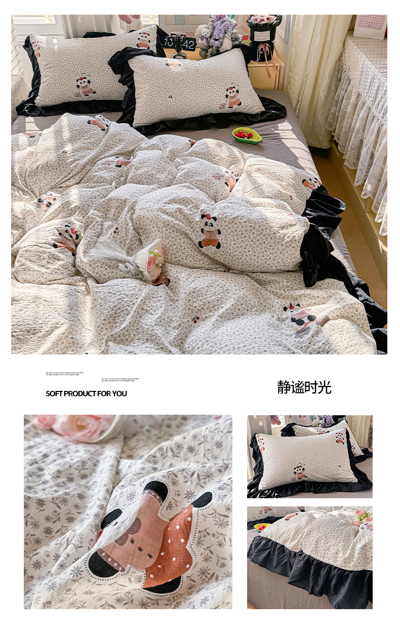 商品名称:(总)优卡迪家纺馆 2026新款皱皱棉双层纱黑花边四件套下载文件包含买家秀