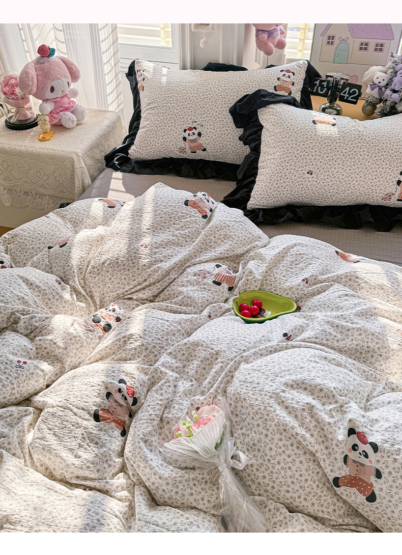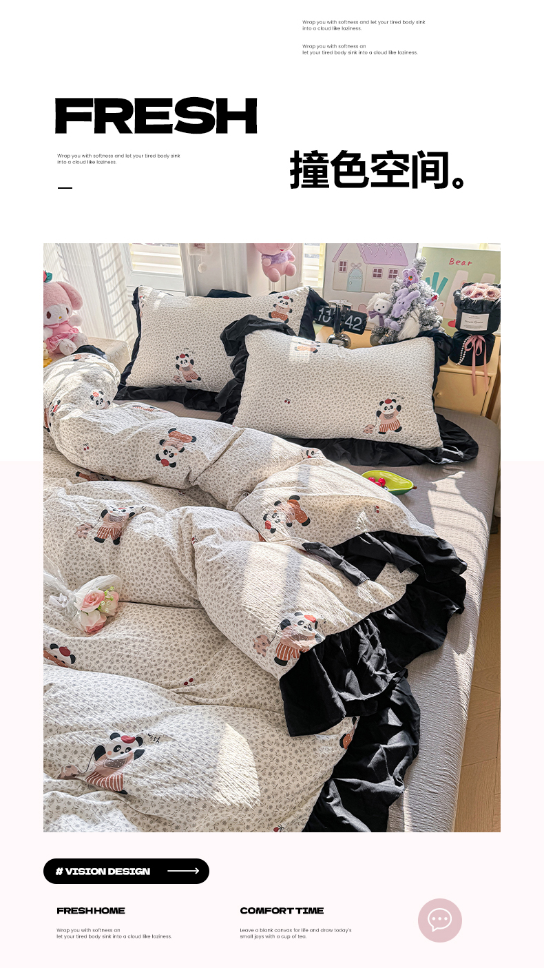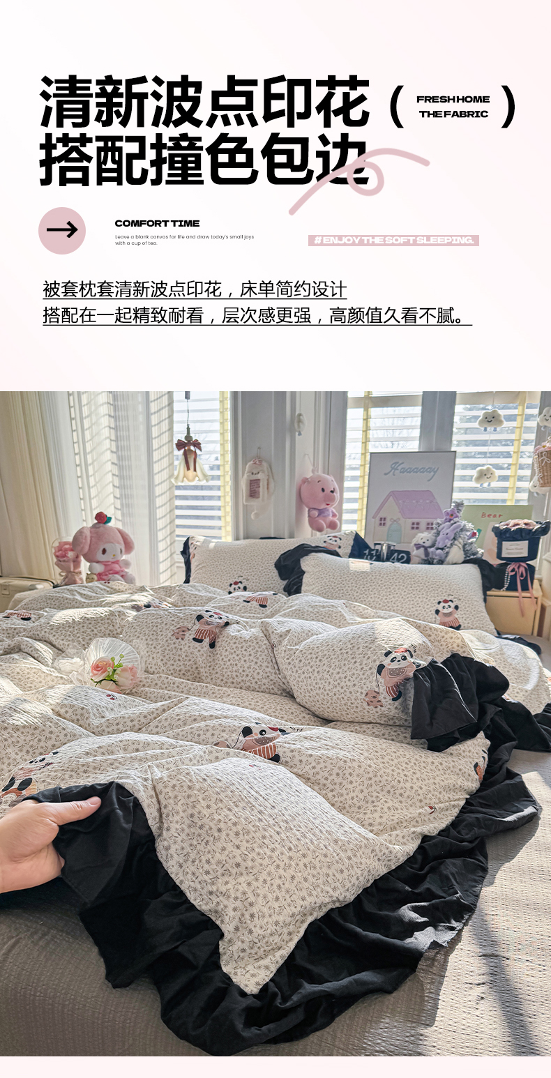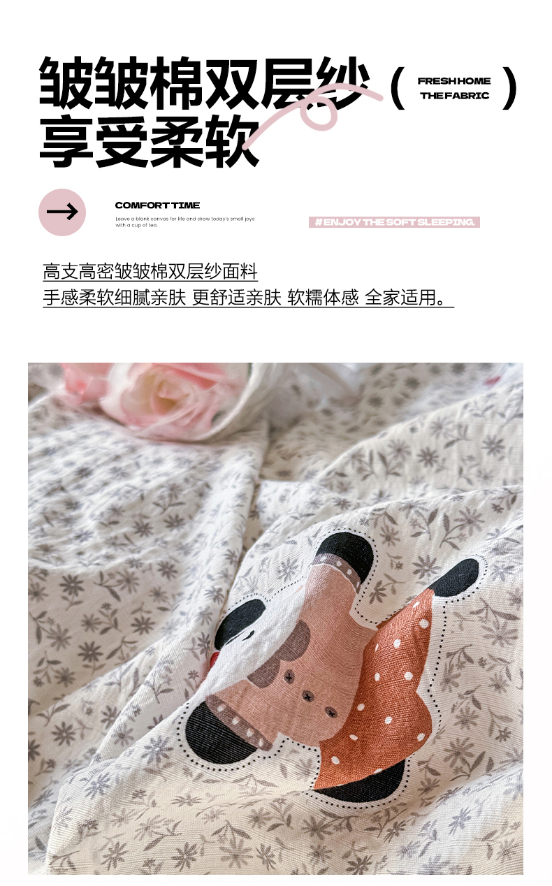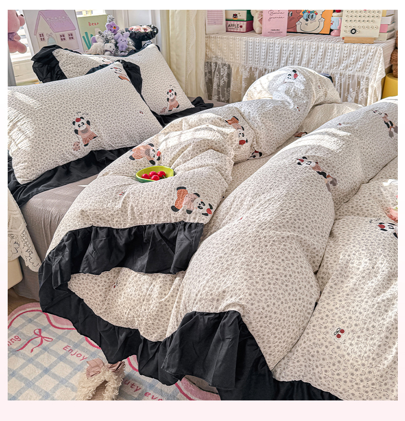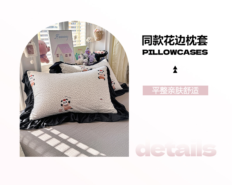商品名称:(总)优卡迪家纺馆 2026新款皱皱棉双层纱黑花边四件套下载文件包含买家秀