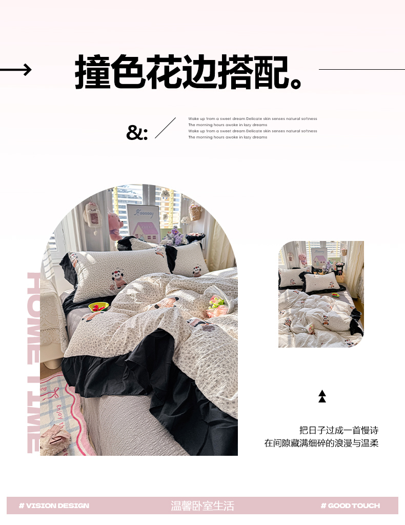 (总)优卡迪家纺馆 2026新款皱皱棉双层纱黑花边四件套下载文件包含买家秀