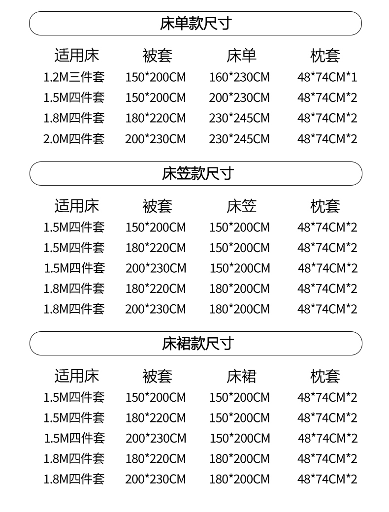 1.5m床笠四件套被套200x230