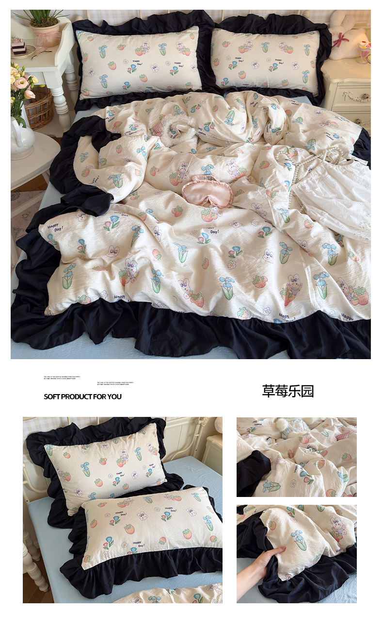 (总)优卡迪家纺馆 2026春夏新款泡泡纱黑花边夏被夏被空调被四件套【下载文件夹包含买家秀】,蓝莓仙草,魔芋橙汁,茉莉奶昔,奶油蜜桃,青柠蜜瓜,香芋紫薯