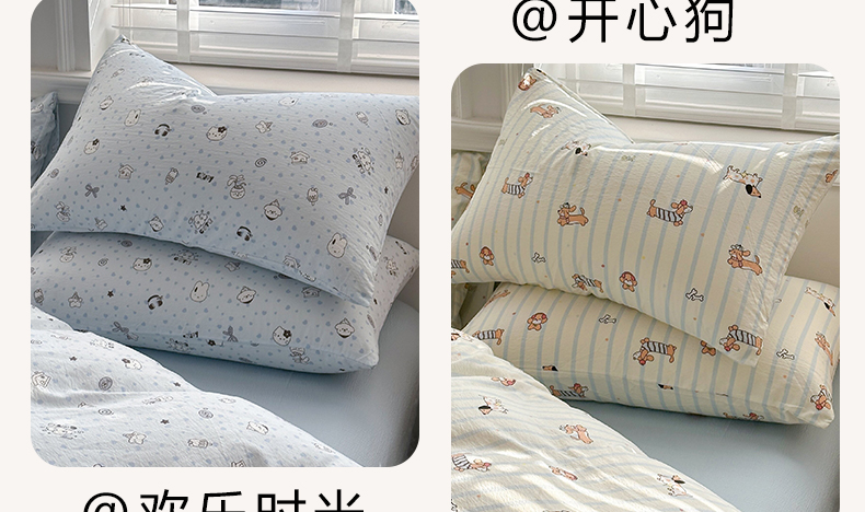 (总)多品家纺 2026新款奶呼呼超柔云感双层纱系列单枕套,白露,半岛兰格,半岛紫格,豹纹猫咪,粉粉小花,福气满满,花田小狗,欢乐时光,开心狗,棉花兔兔,浅浅春意,桃气兔兔,淘气园,汪星人,小橘狗,熊多多,熊熊空间,学院派,樱桃蓝,樱桃紫,组合图
