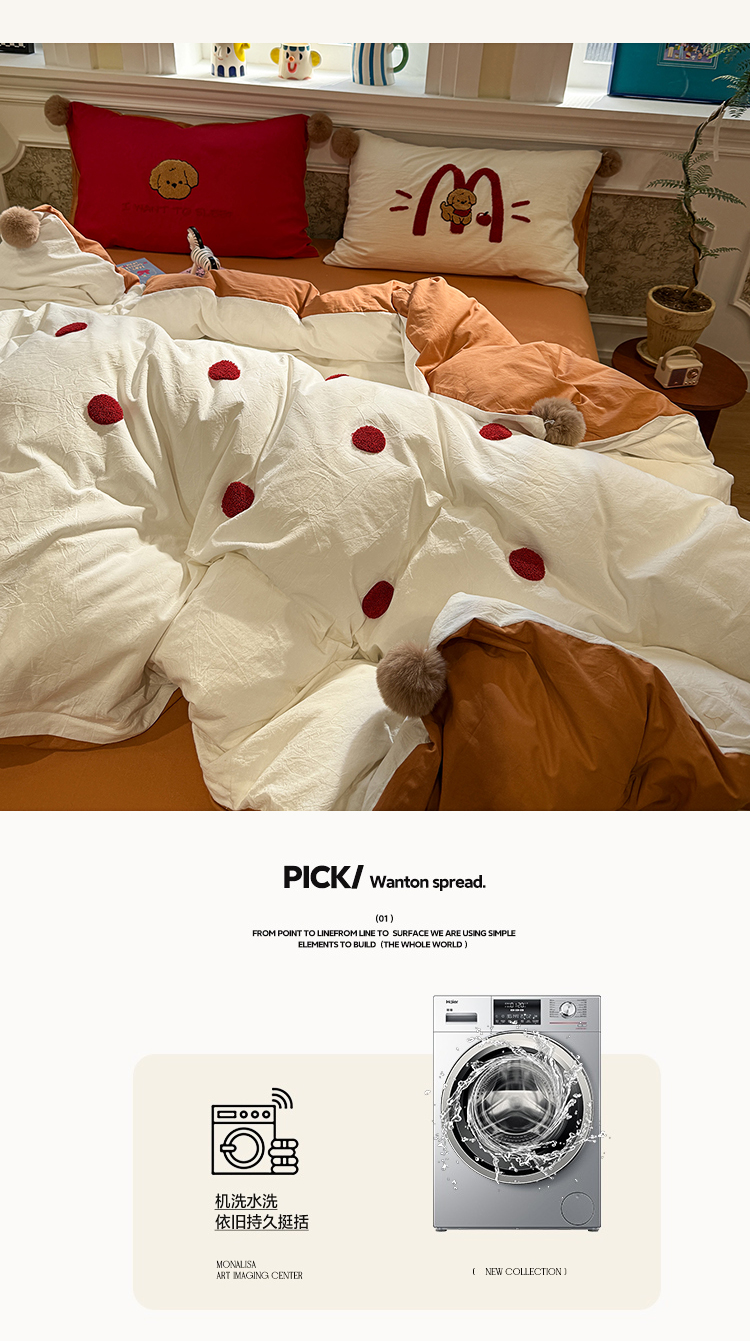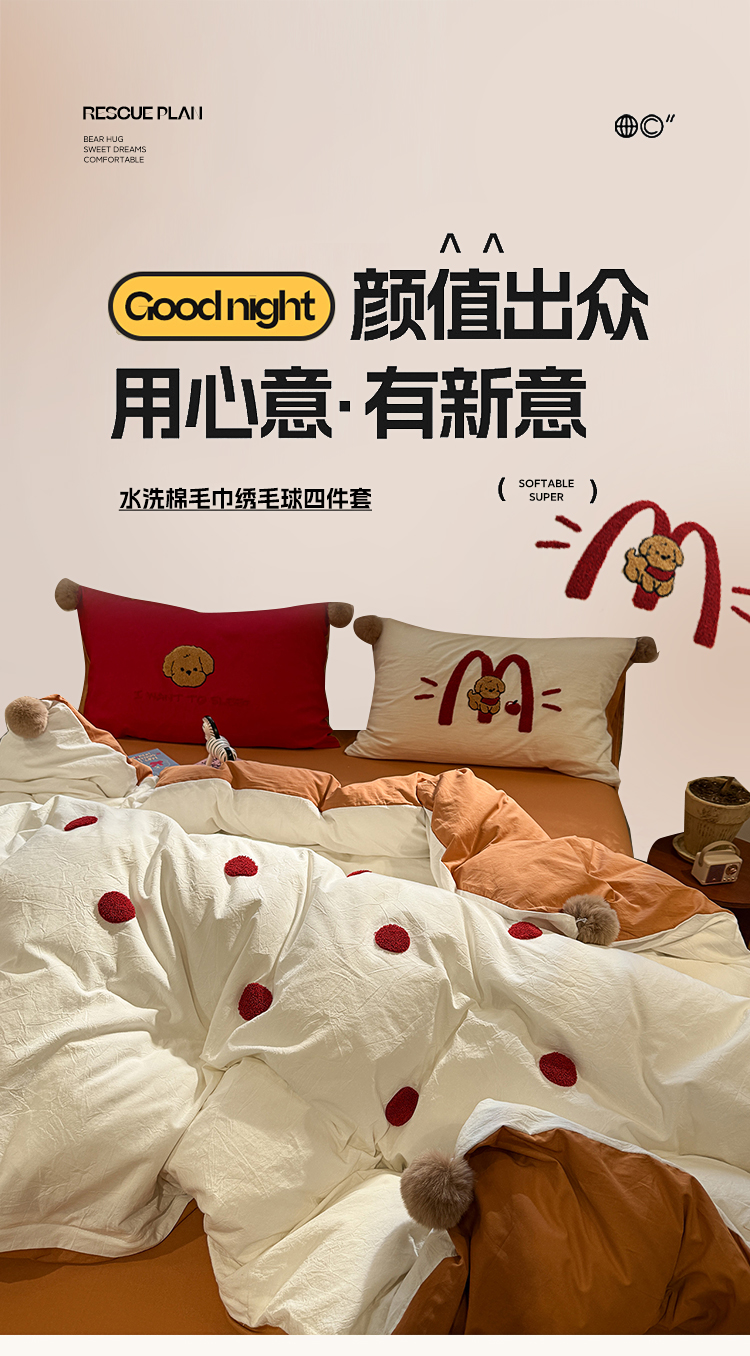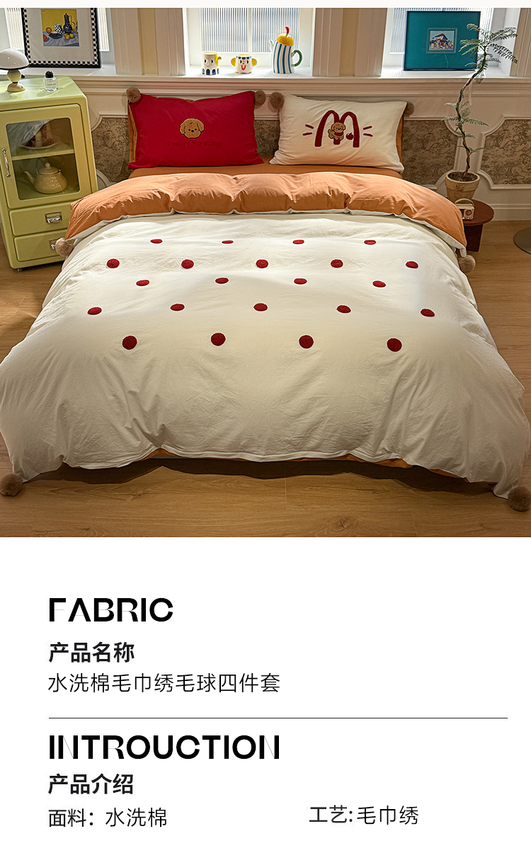 当前位置: 91家纺网 > 商品网购 > 床品套件 > 四件套 > 毛巾绣四件套 > 盼季家纺 2026新款水洗棉毛巾绣毛球四件套 毛巾绣-麦小劳