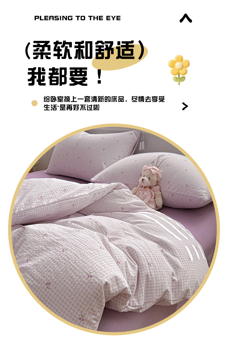 当前位置: 91家纺网 > 商品网购 > 床品套件 > 四件套 > 其它四件套 > 多品家纺 2026新款奶呼呼超柔云感双层纱系列四件套 樱桃紫
