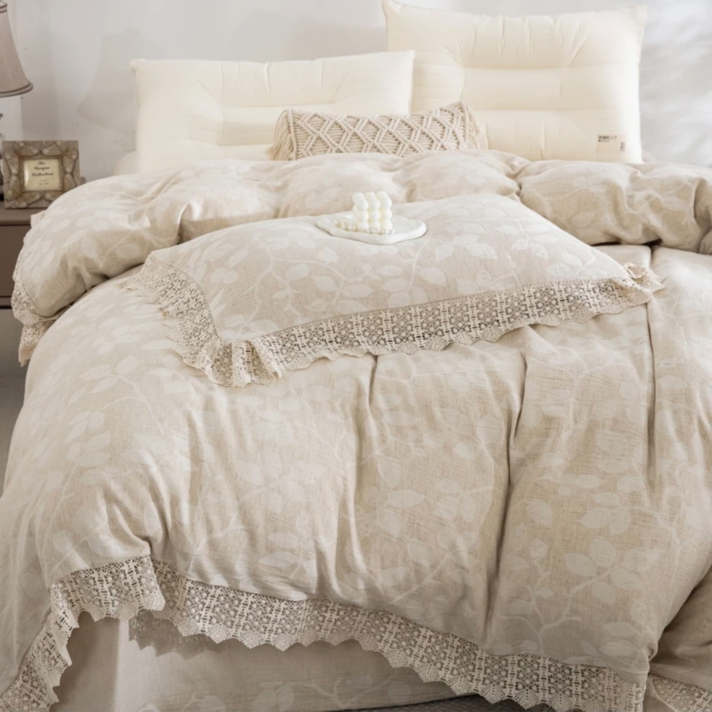 商品名称:(总)双层纱家居 2025新款法式花边AB版A版棉麻B版棉麻双层纱四件套