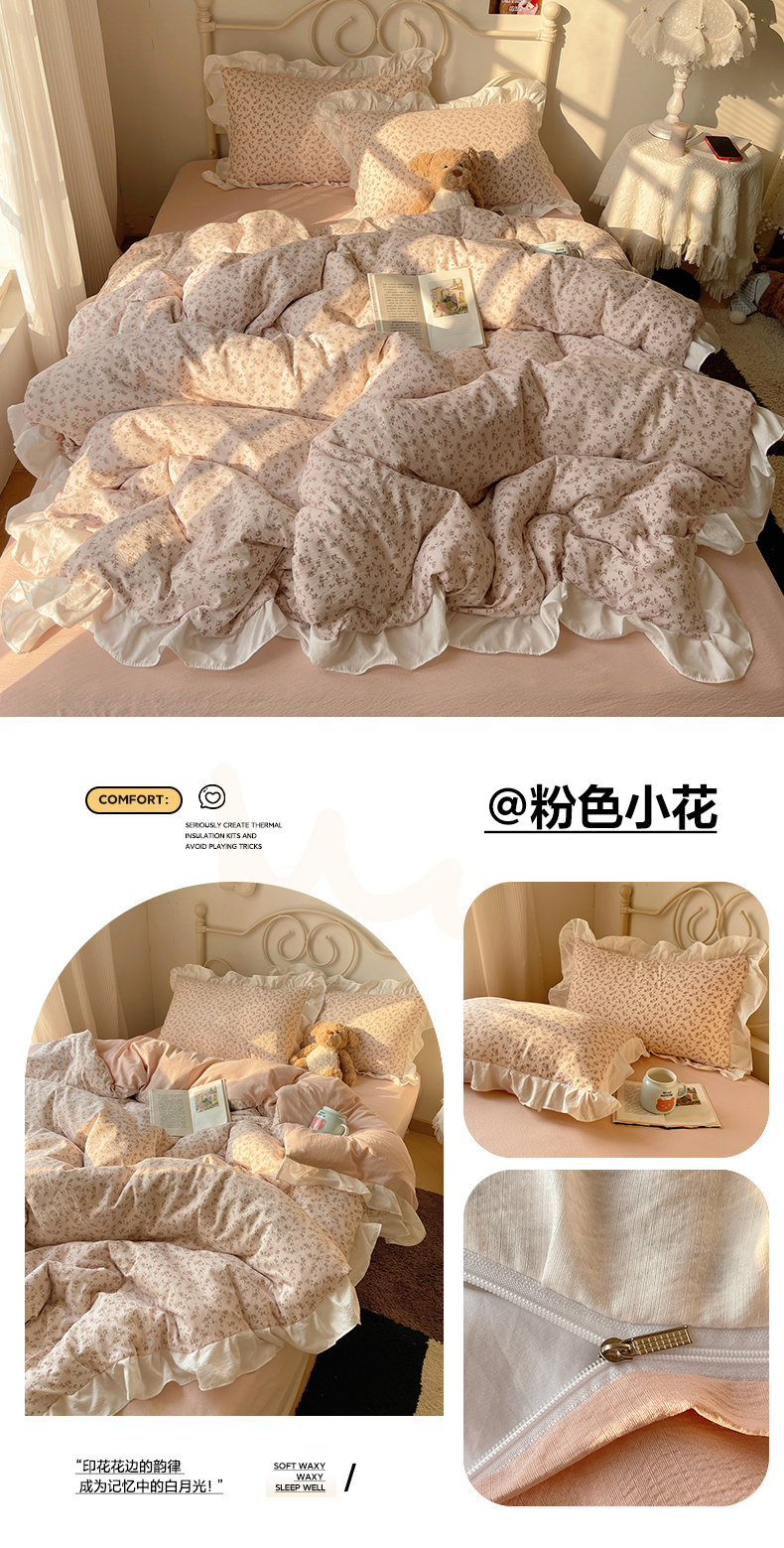 当前位置: 91家纺网 > 商品网购 > 床品套件 > 四件套 > 其它四件套 > 美乐迪家纺 2026新款云感双层纱花边四件套 柚米