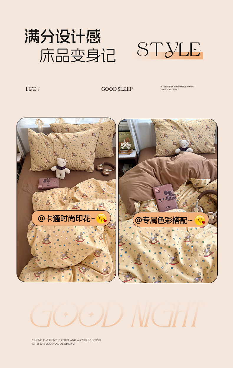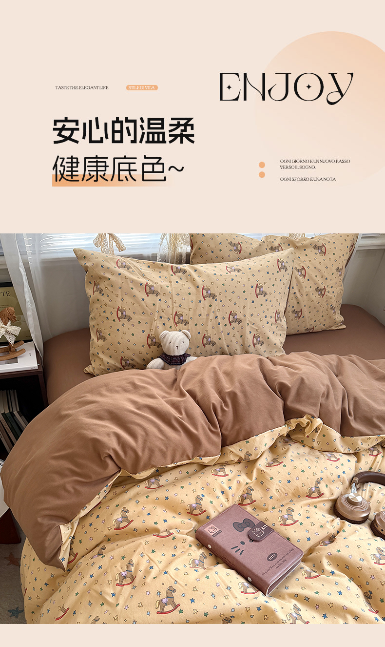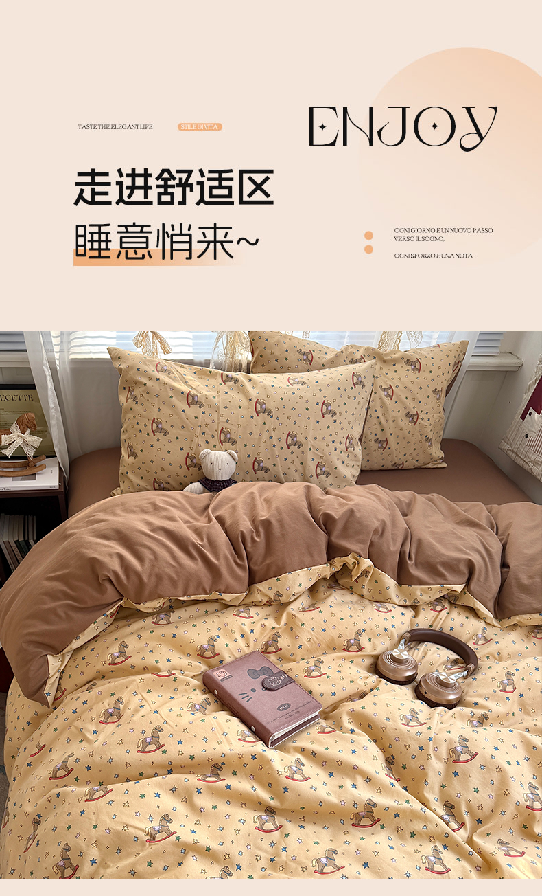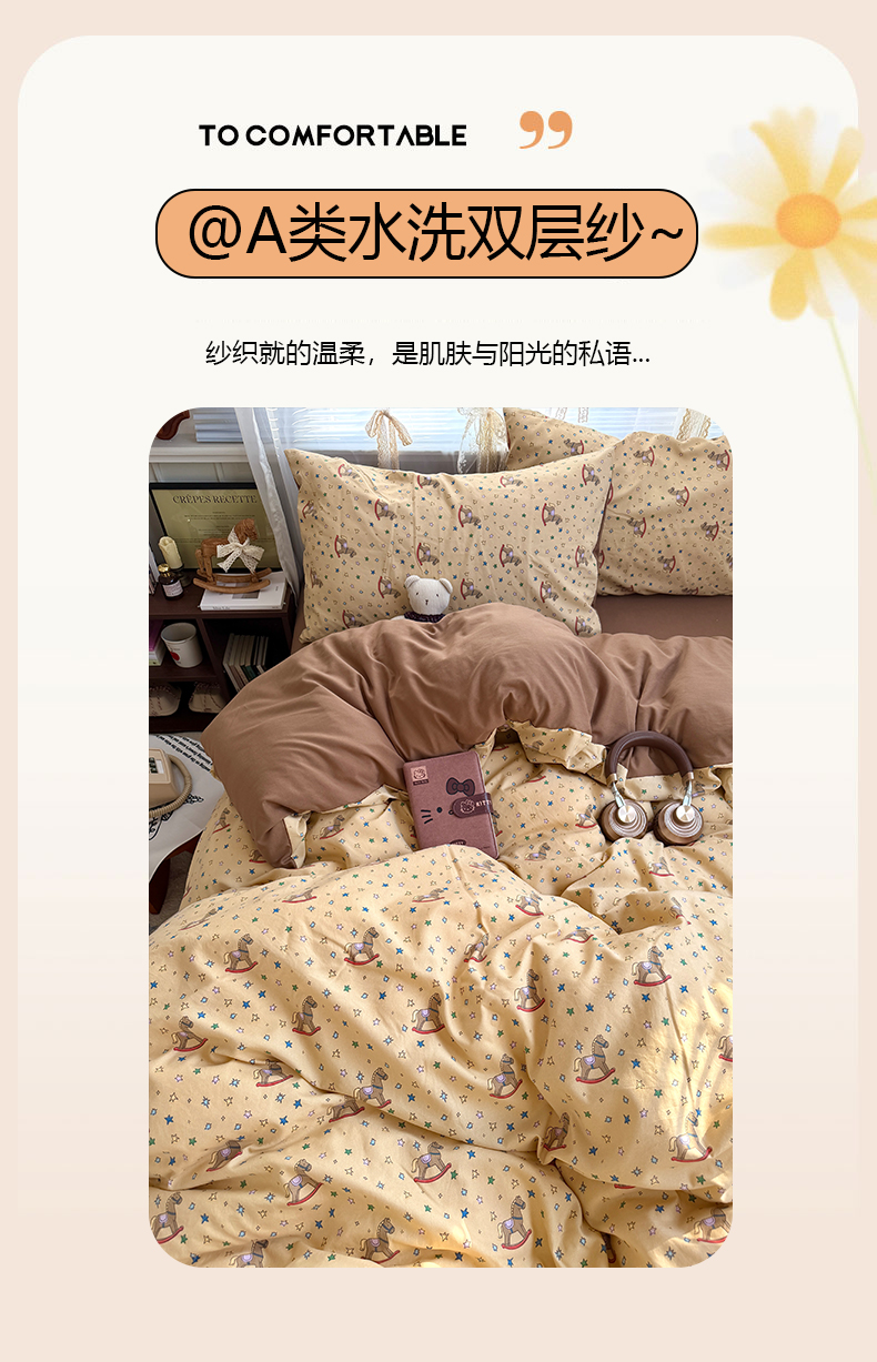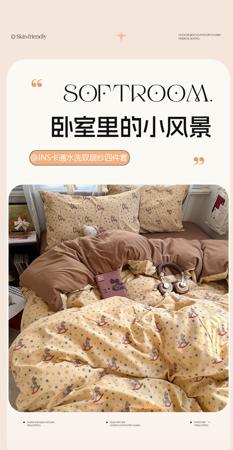 当前位置: 91家纺网 > 商品网购 > 床品套件 > 四件套 > 双层纱四件套 > 原素 2026新款小清新水洗双层纱四件套 复古木马
