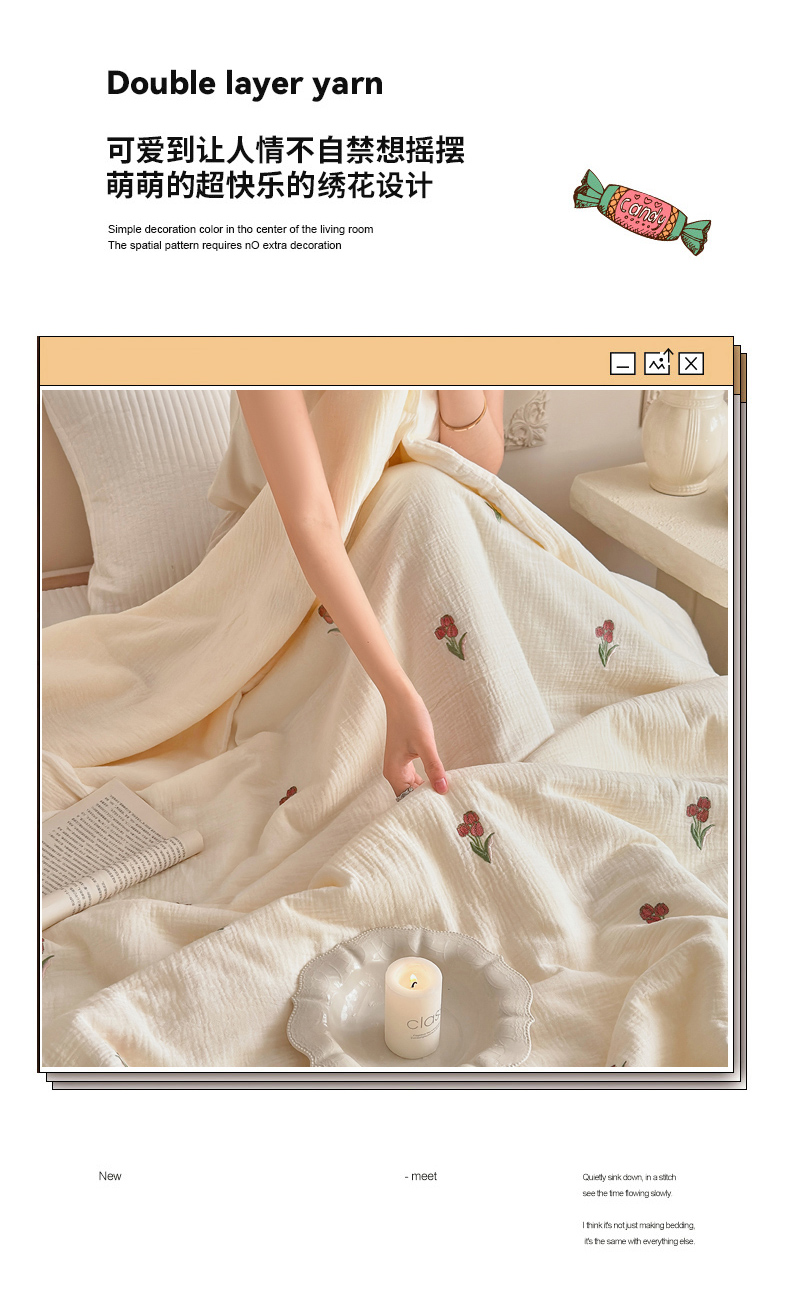 • 91家纺网 家纺一手货源 找家纺 宇航家纺 2026新款全棉纯棉皱皱纱刺绣款夏被夏凉被空调被床盖四件套 蓓蕾