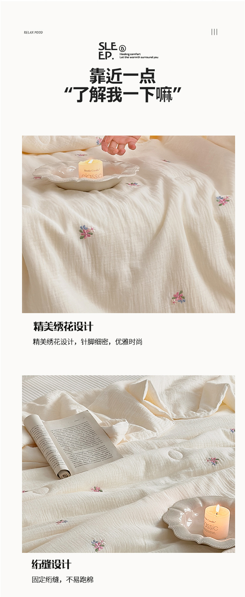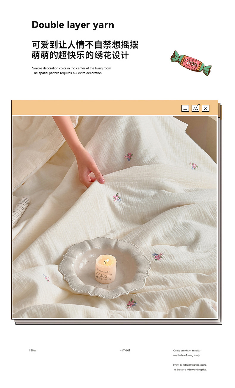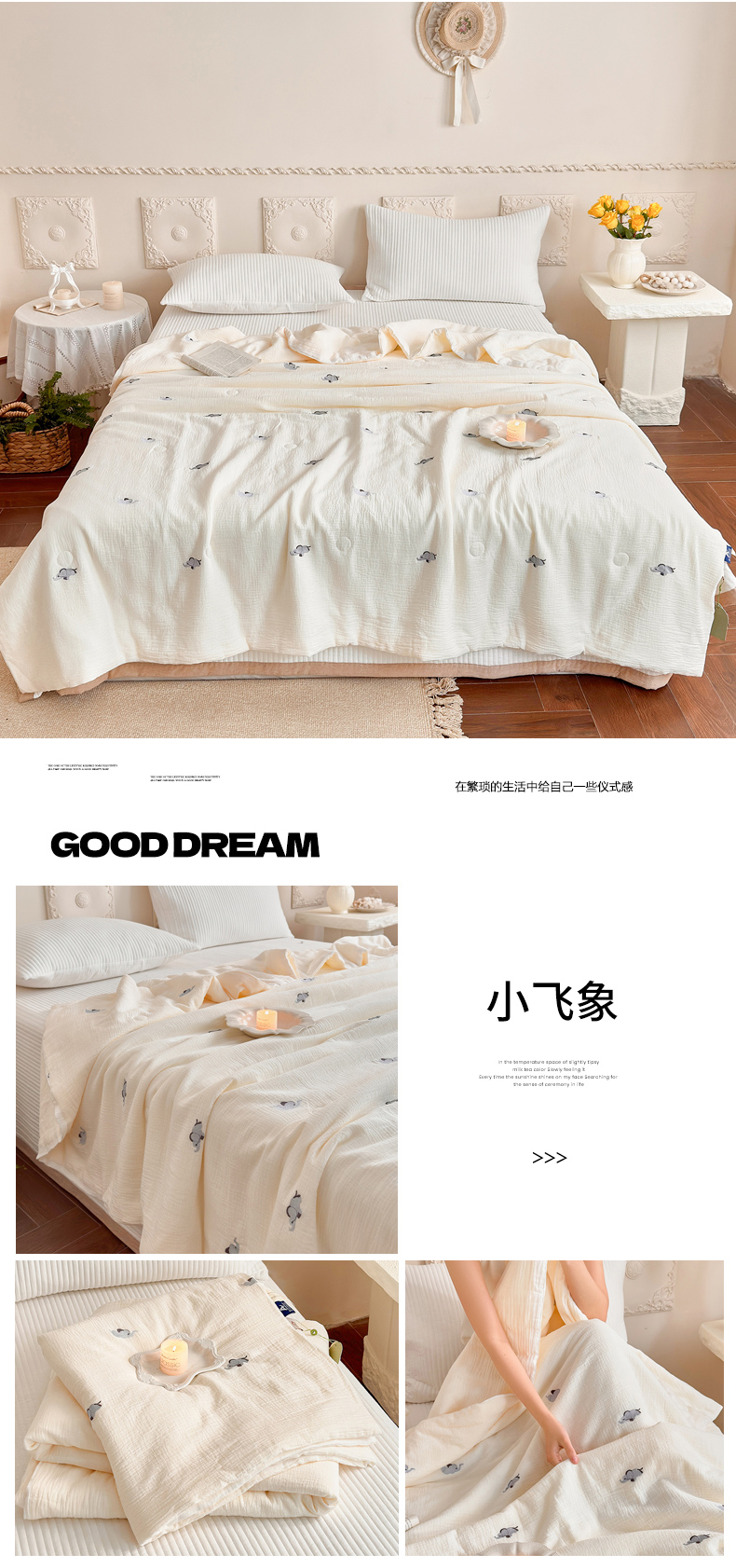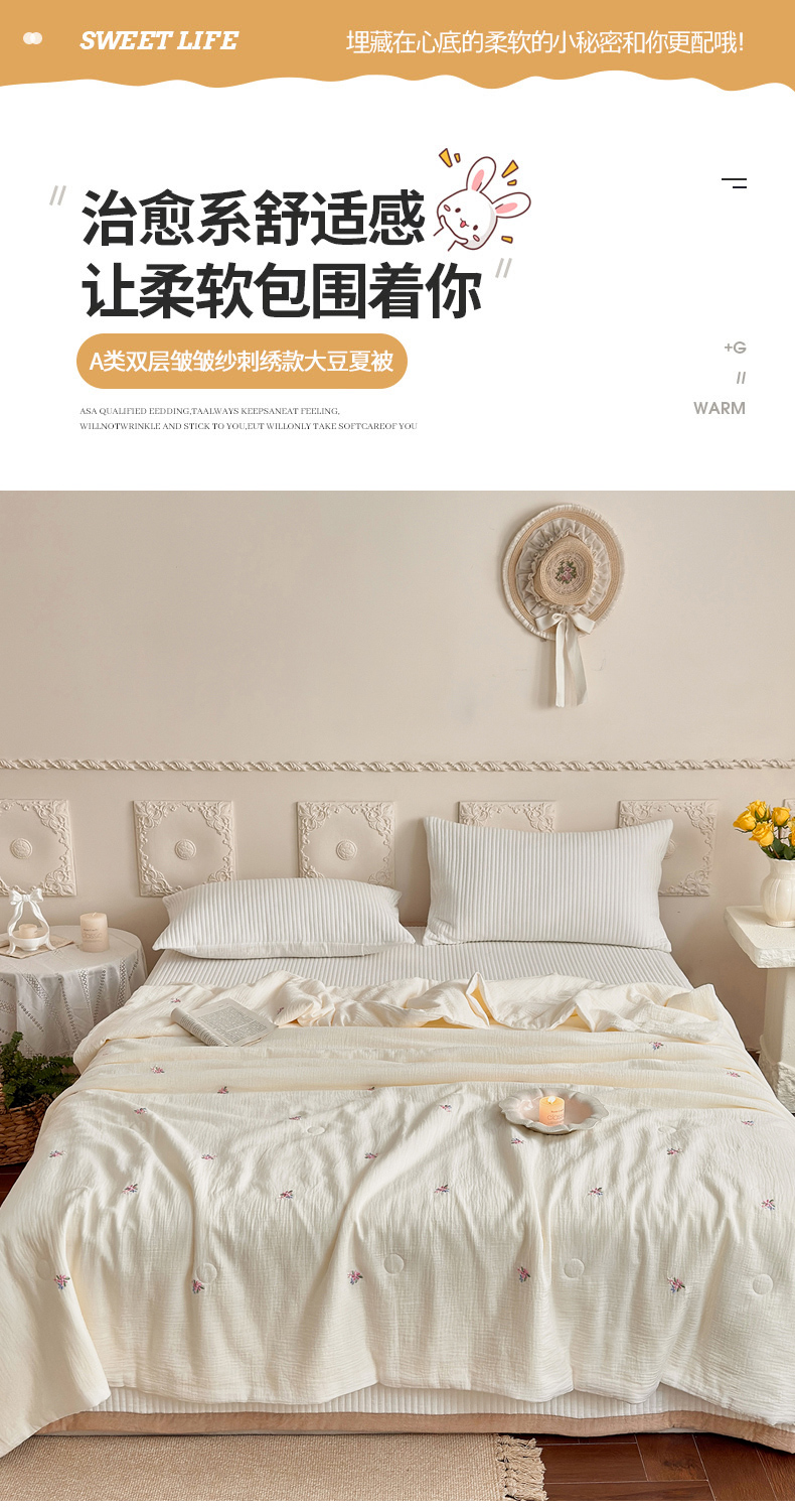 (总)宇航家纺 2026新款全棉纯棉皱皱纱刺绣款夏被夏凉被空调被床盖四件套,蓓蕾,蝴蝶结,领结兔,枇杷叶,三叶草,小飞象,小玫瑰,小樱桃,星眠,幸运熊,云裳,枝意,组合图(仅供展示不可下单)