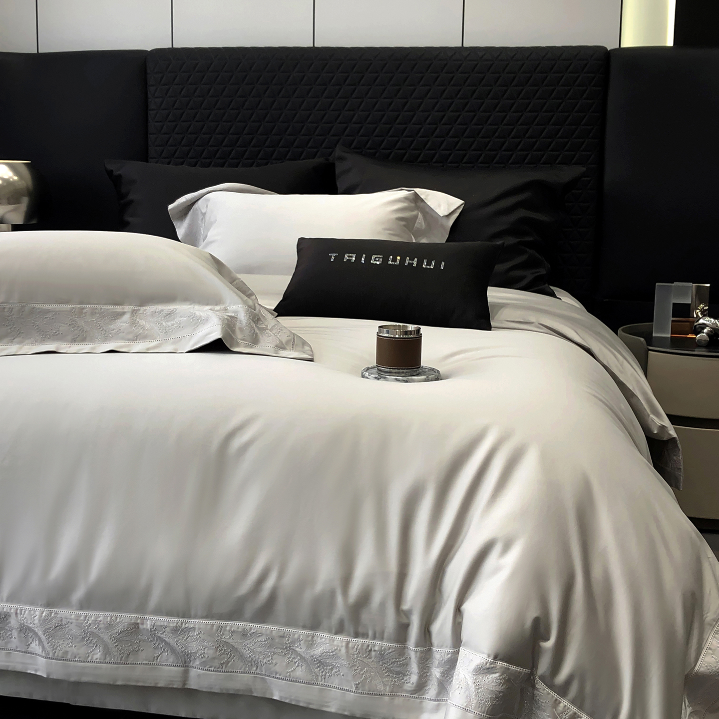 (总)太古汇家居 2025新款打孔镂空宽边格拉夫系列四件套,格拉夫-粉,格拉夫-红,格拉夫-蓝,格拉夫-米白