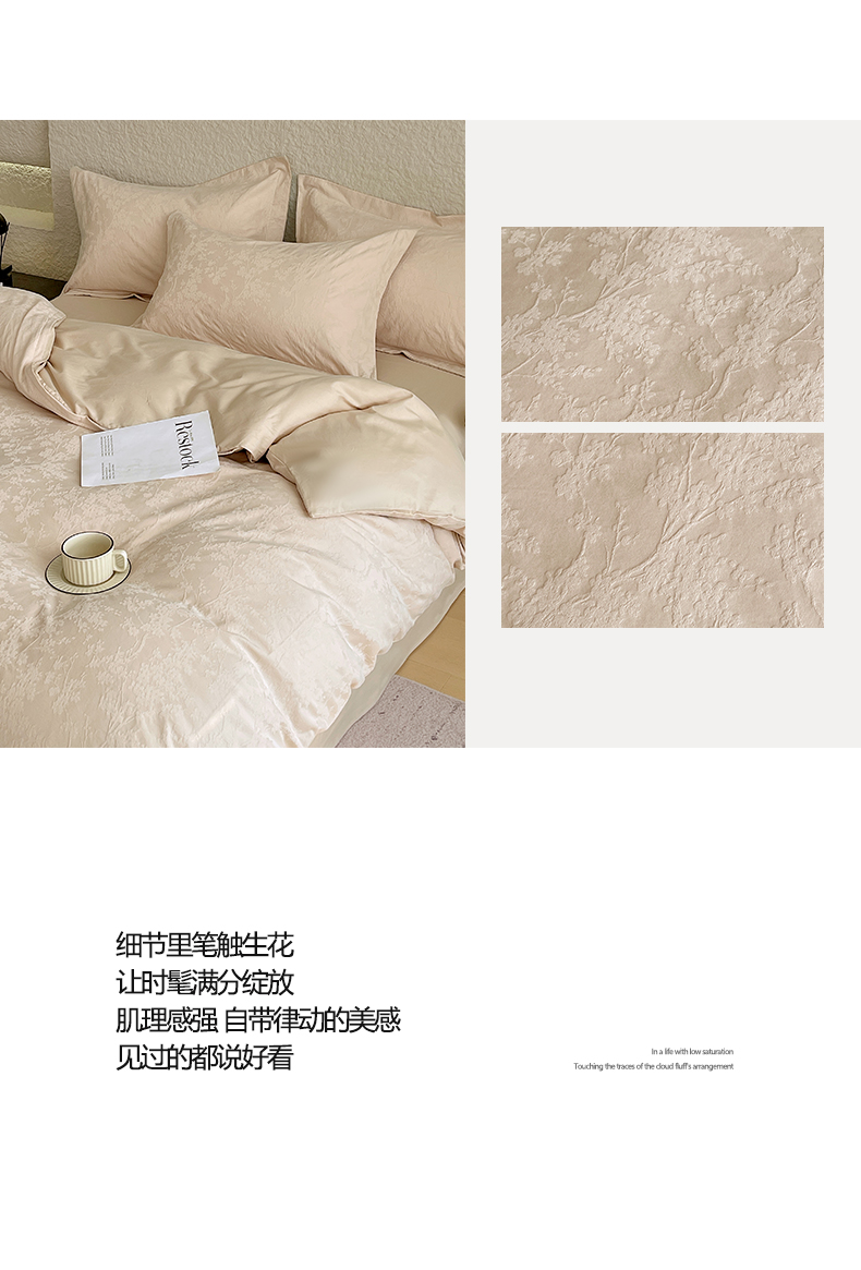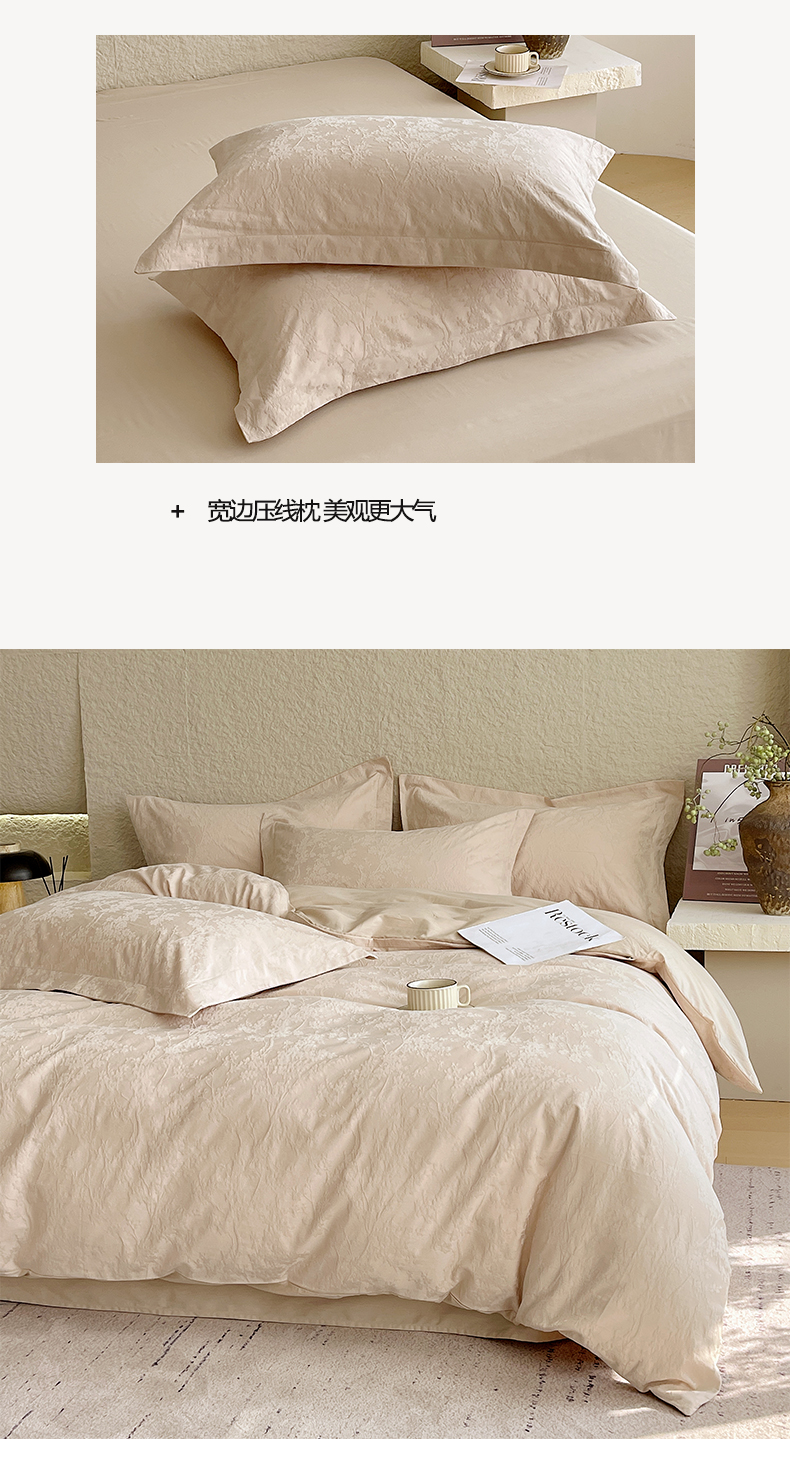 商品名称:麦田家纺 2026新款A类全棉亮面浮雕提花四件套 梦幻花园-米杏