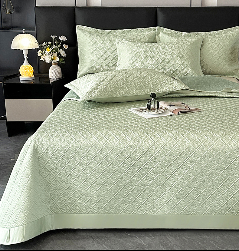 商品名称:欧夏家纺 2026新款欧式夏季凉感莱赛尔天丝床盖三件套夹棉床盖床褥直播供货 樱桃紫