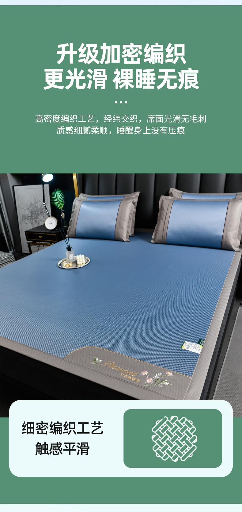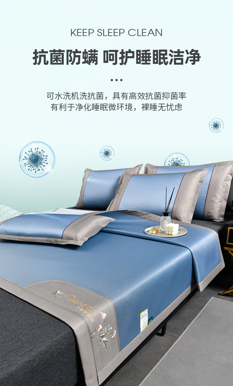 当前位置: 91家纺网 > 商品网购 > 床上用品 > 凉席 > 凉席套件 > 小牛席业 2026新款艾草清香冰丝席系列凉席藤席冰藤席冰丝席竹席草席空调席乳胶席豆豆席 艾草清香冰丝席-蓝色