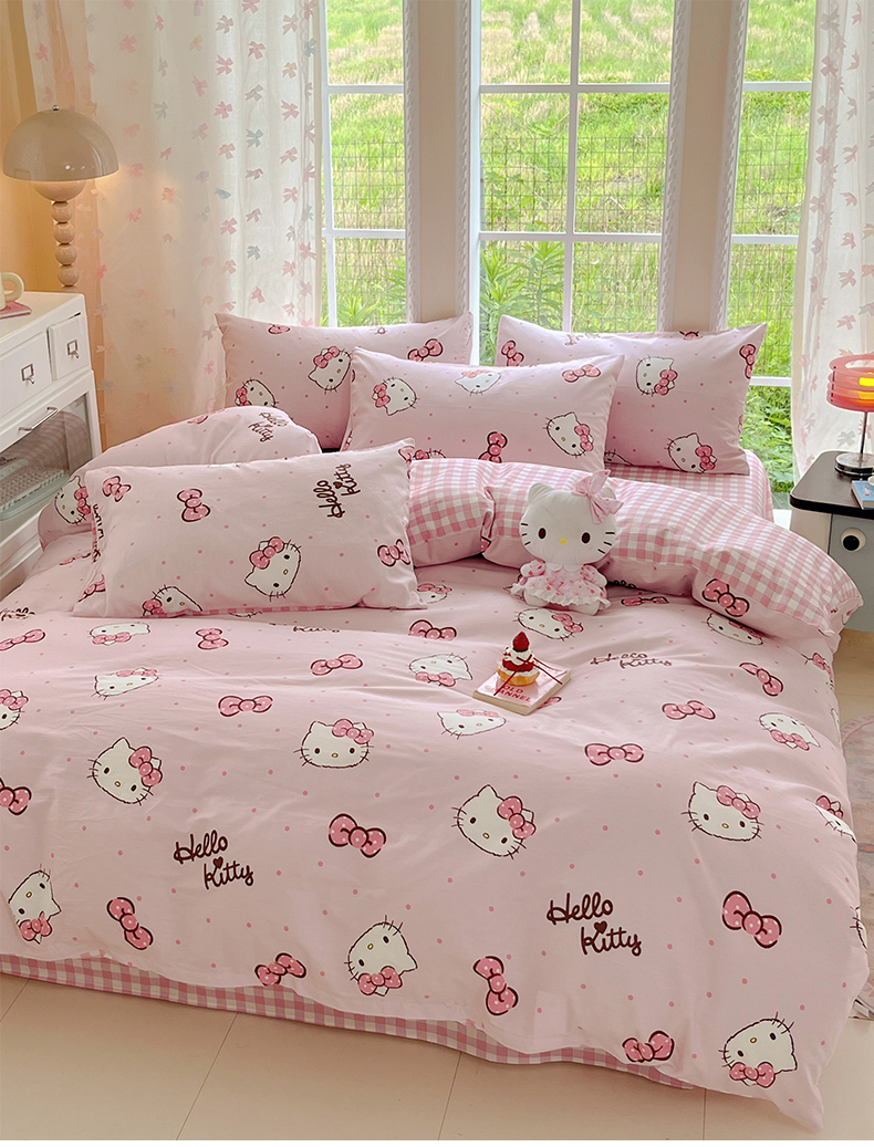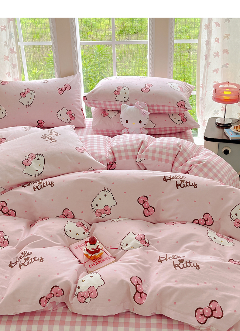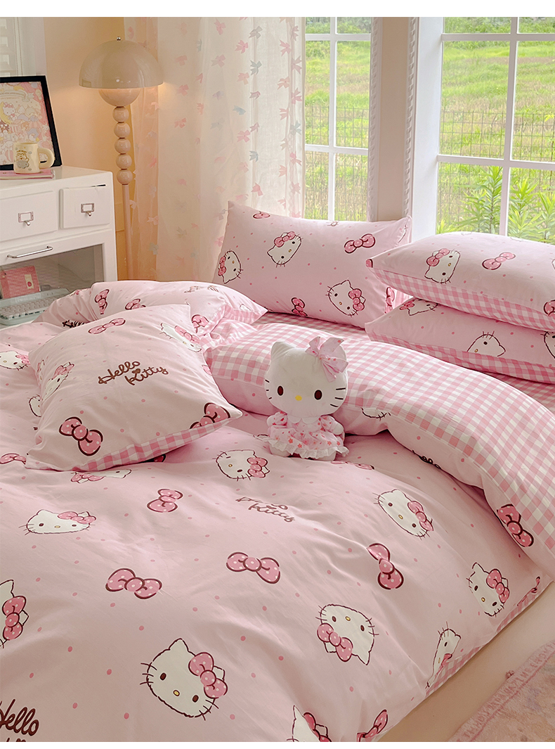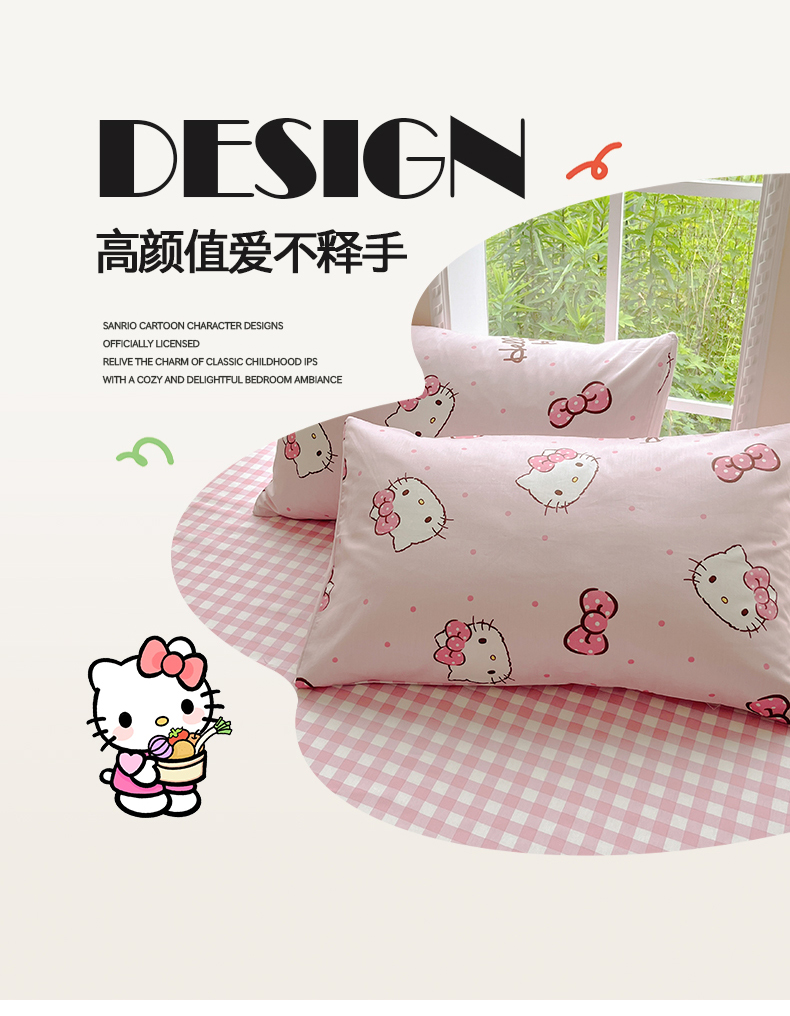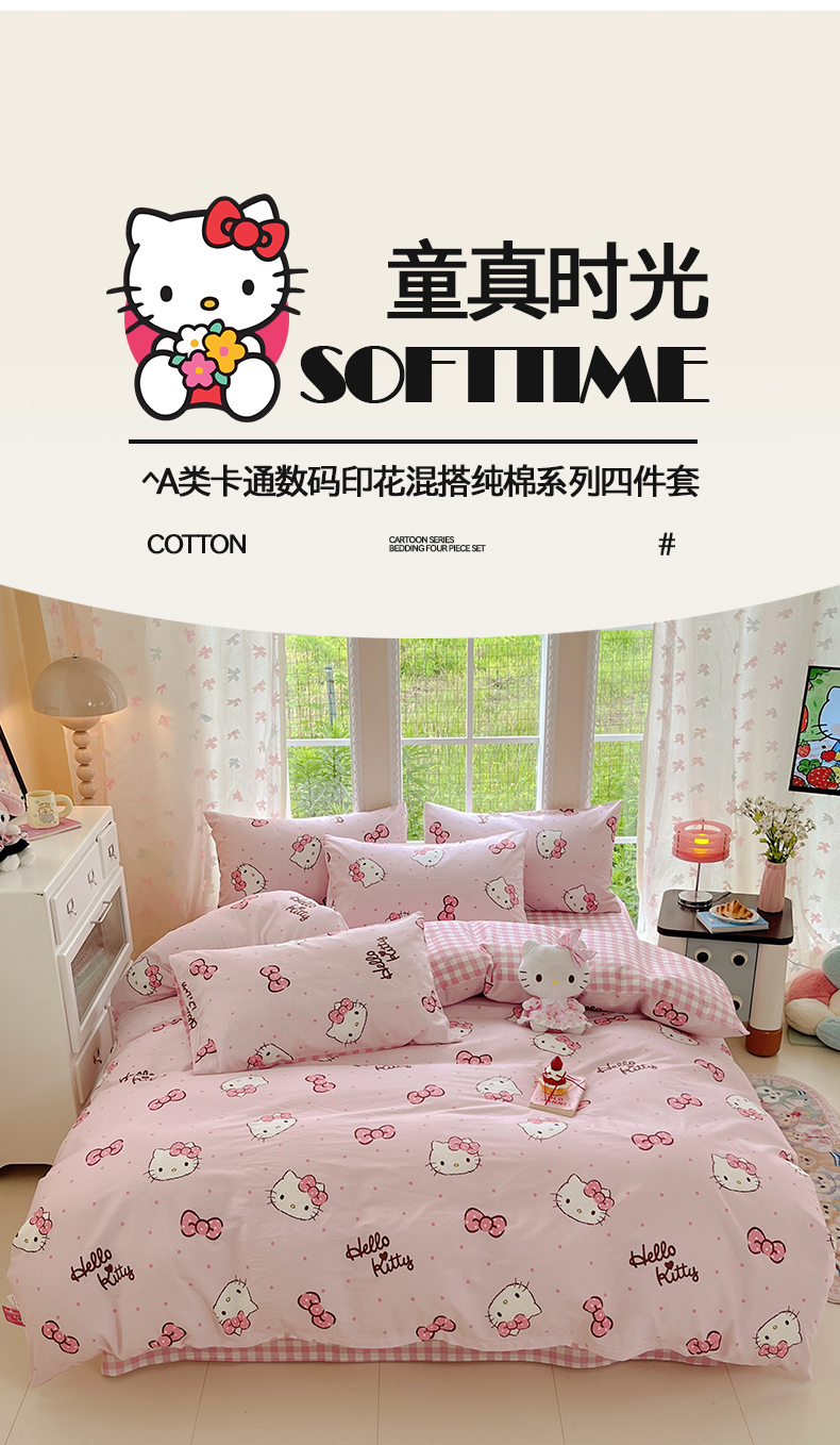 当前位置: 91家纺网 > 商品网购 > 床品套件 > 四件套 > 全棉普通四件套 > 桃子家居 2026新款A类三丽鸥正版授权卡通数码印花混搭纯棉印花系列四件套 棉三丽鸥-蝴蝶结kitty