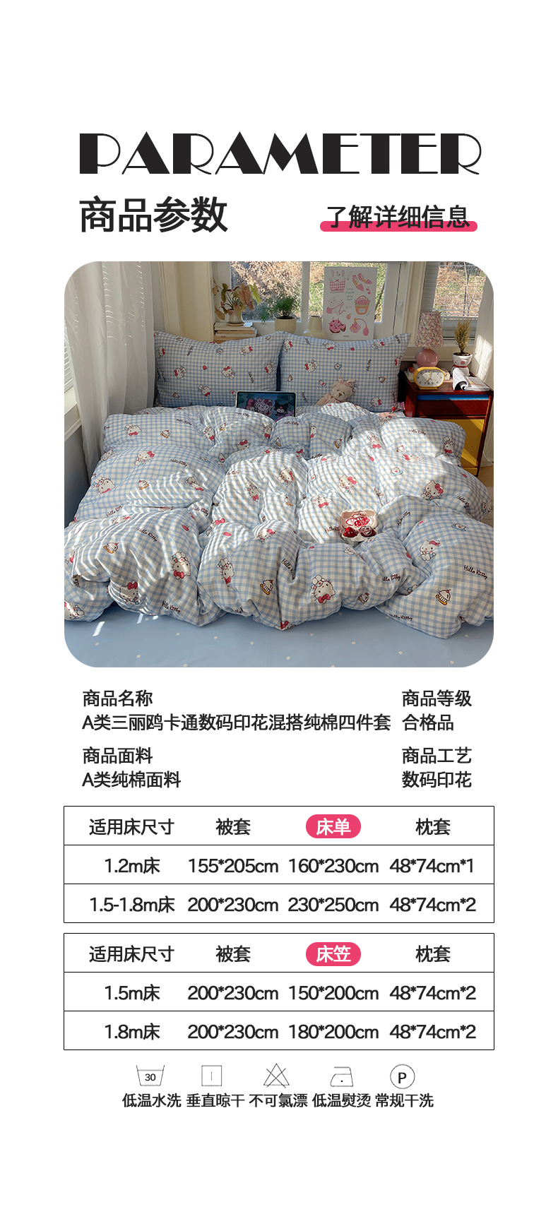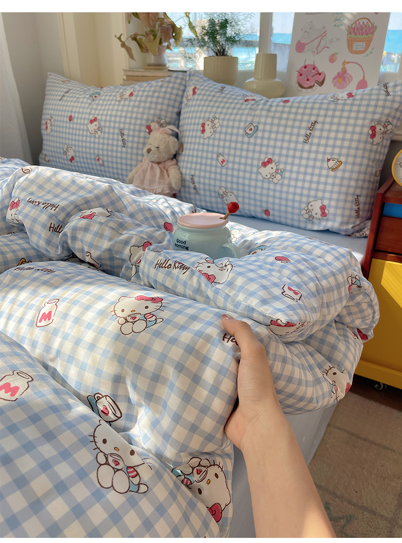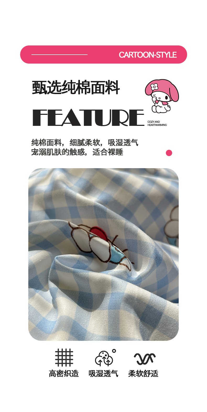 当前位置: 91家纺网 > 商品网购 > 床品套件 > 四件套 > 全棉普通四件套 > 桃子家居 2026新款A类三丽鸥正版授权卡通数码印花混搭纯棉印花系列四件套 棉三丽鸥-蓝格甜心kt
