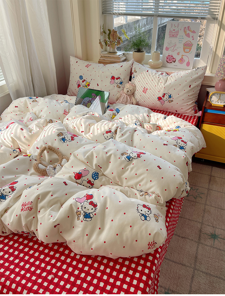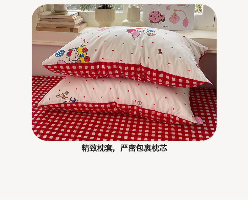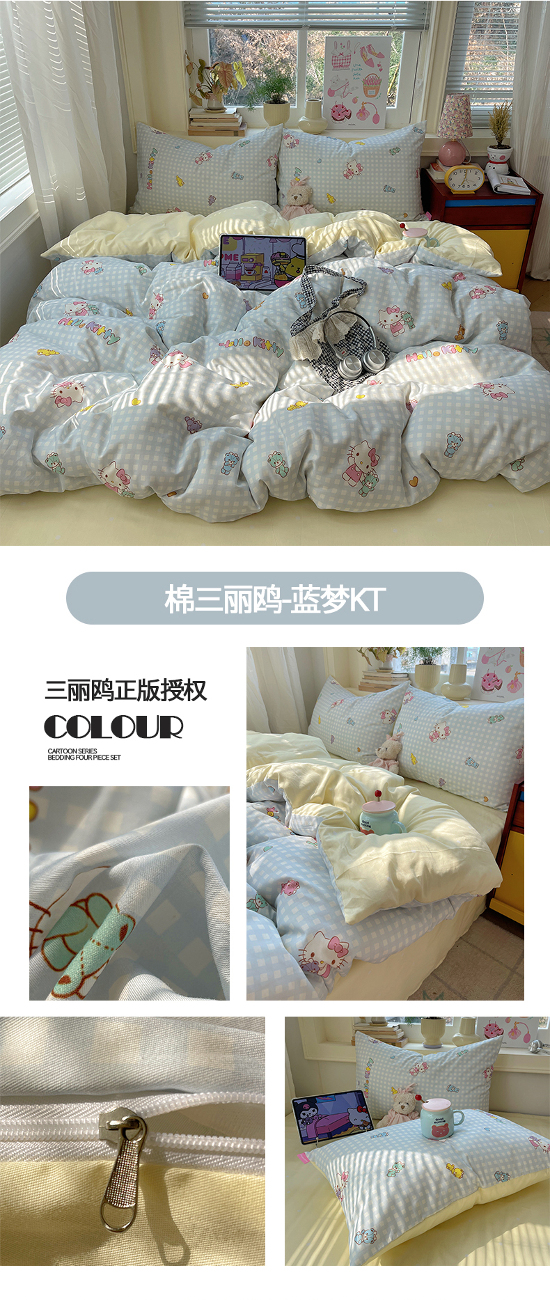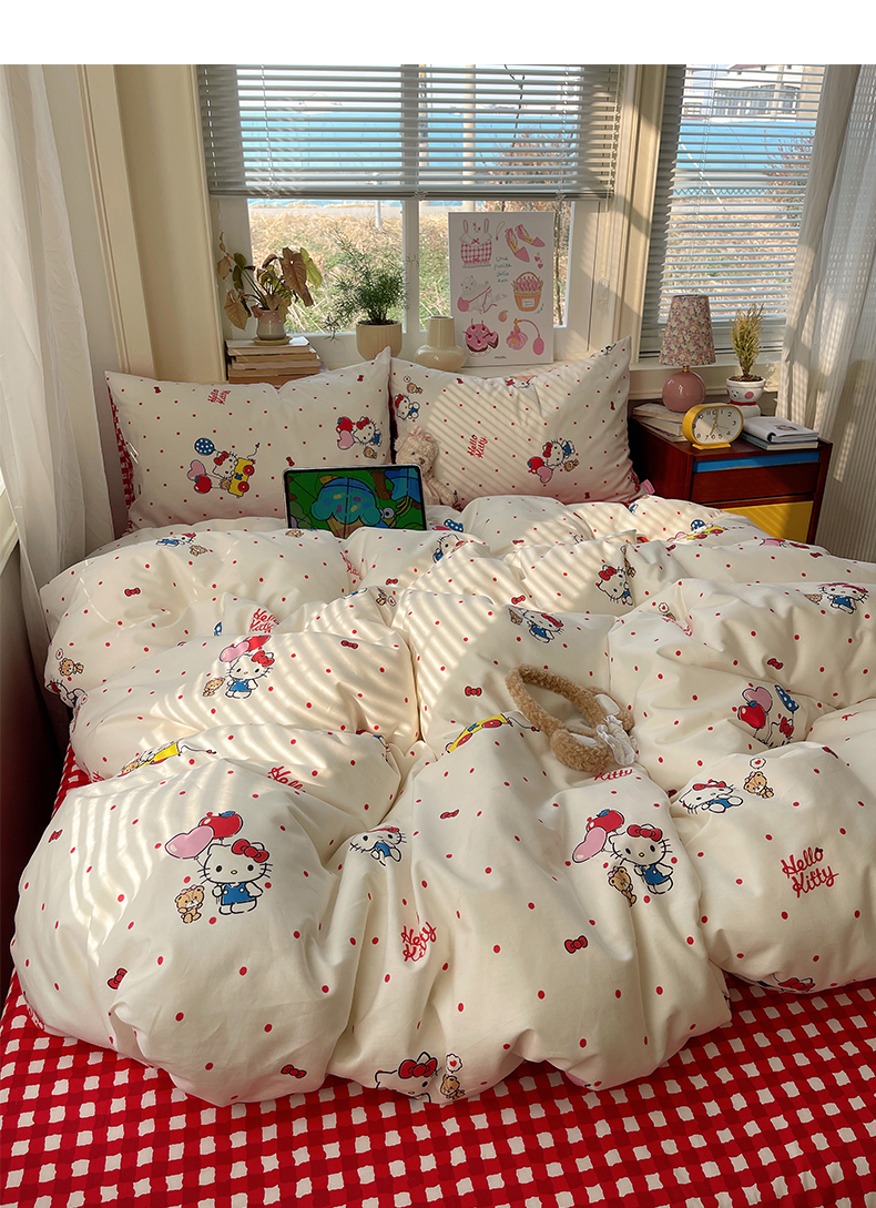 当前位置: 91家纺网 > 商品网购 > 床品套件 > 四件套 > 全棉普通四件套 > 桃子家居 2026新款A类三丽鸥正版授权卡通数码印花混搭纯棉印花系列四件套 棉三丽鸥-甜心波点kt