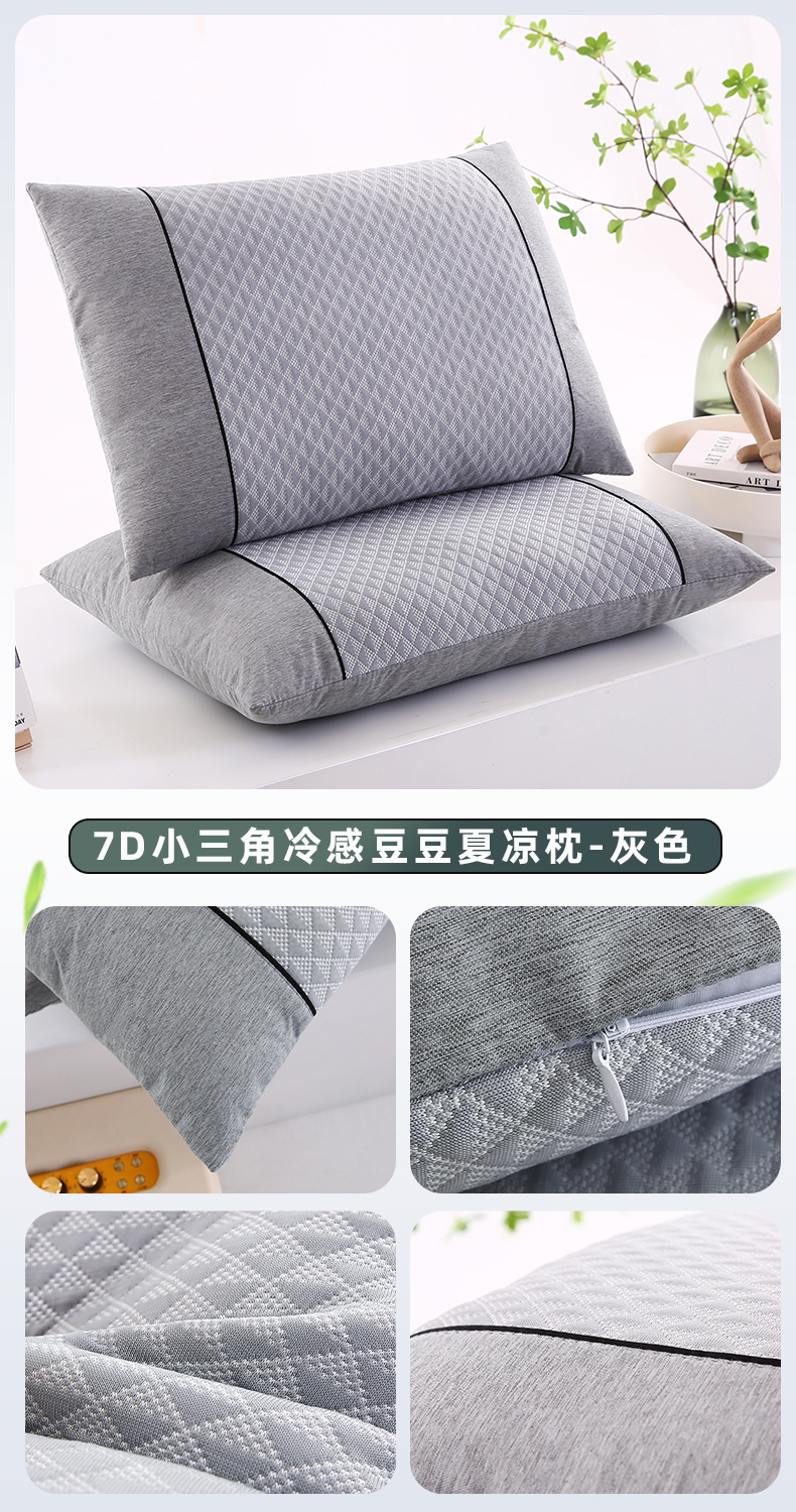 商品名称:小牛席业 2026新款7D小三角按摩-冷感豆豆【夏凉枕】夏凉枕夏凉枕夏天凉枕头竹枕头冰丝枕套藤枕头冰藤枕记忆枕 7D小三角冷感豆豆夏凉枕(灰色)