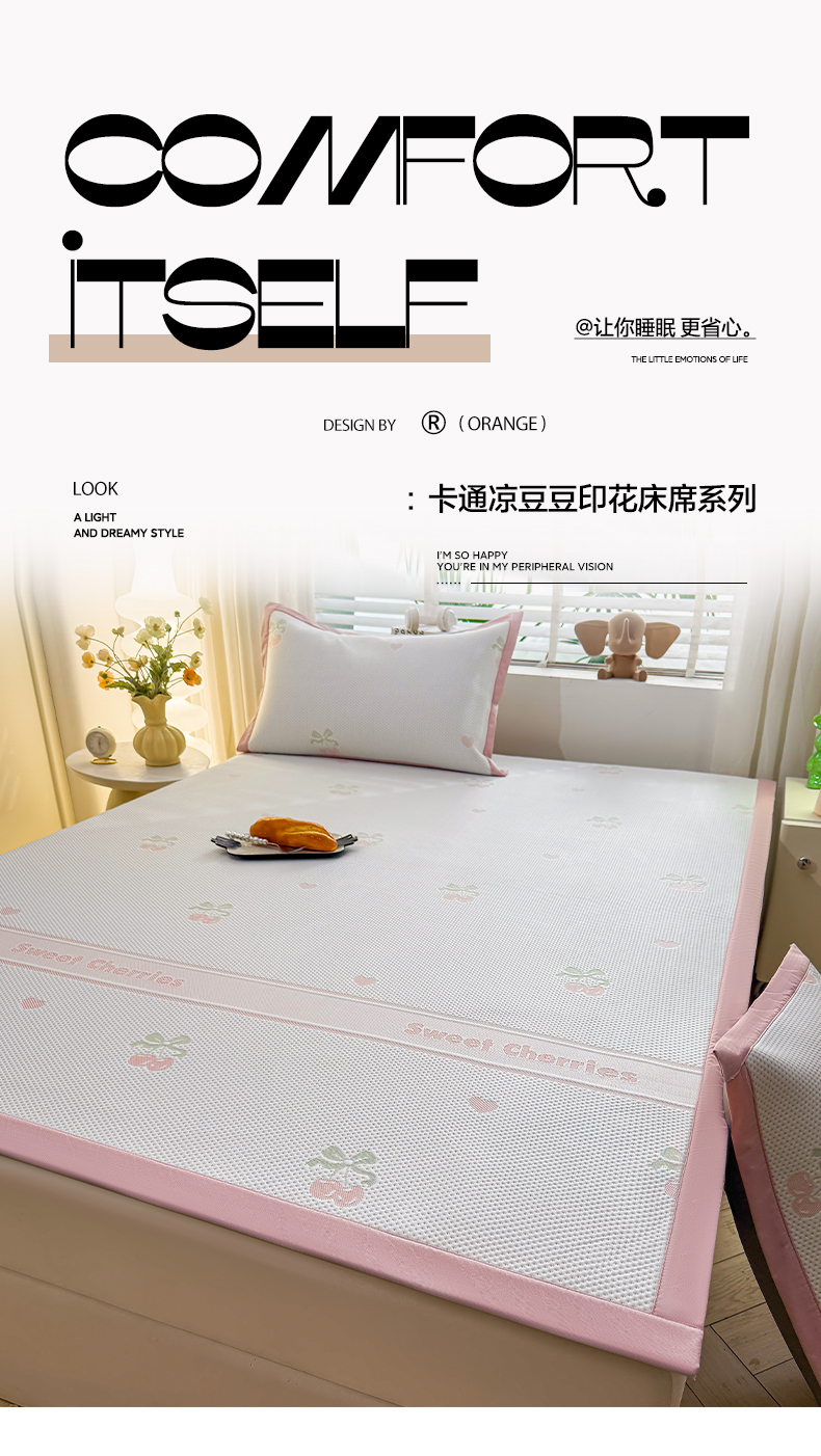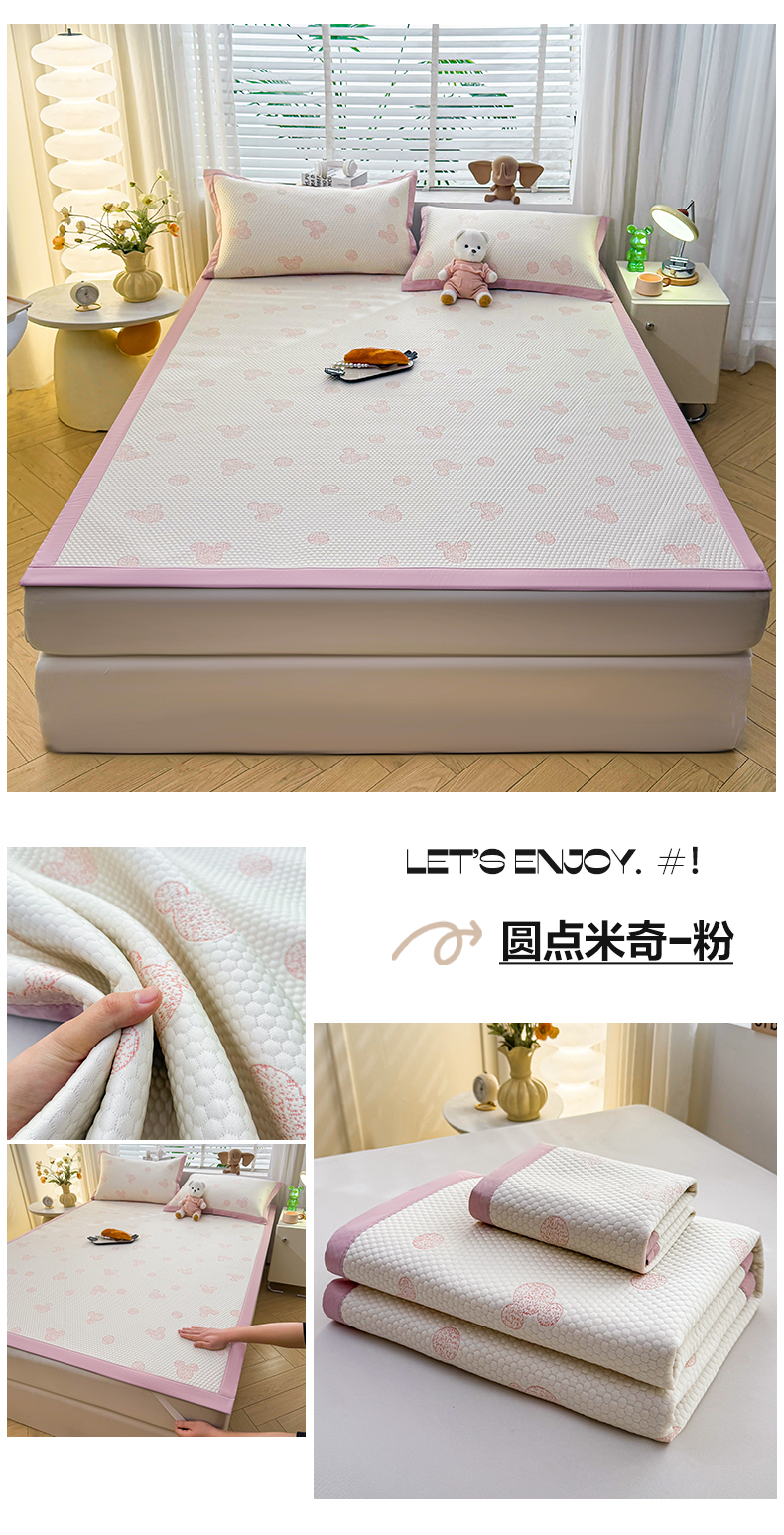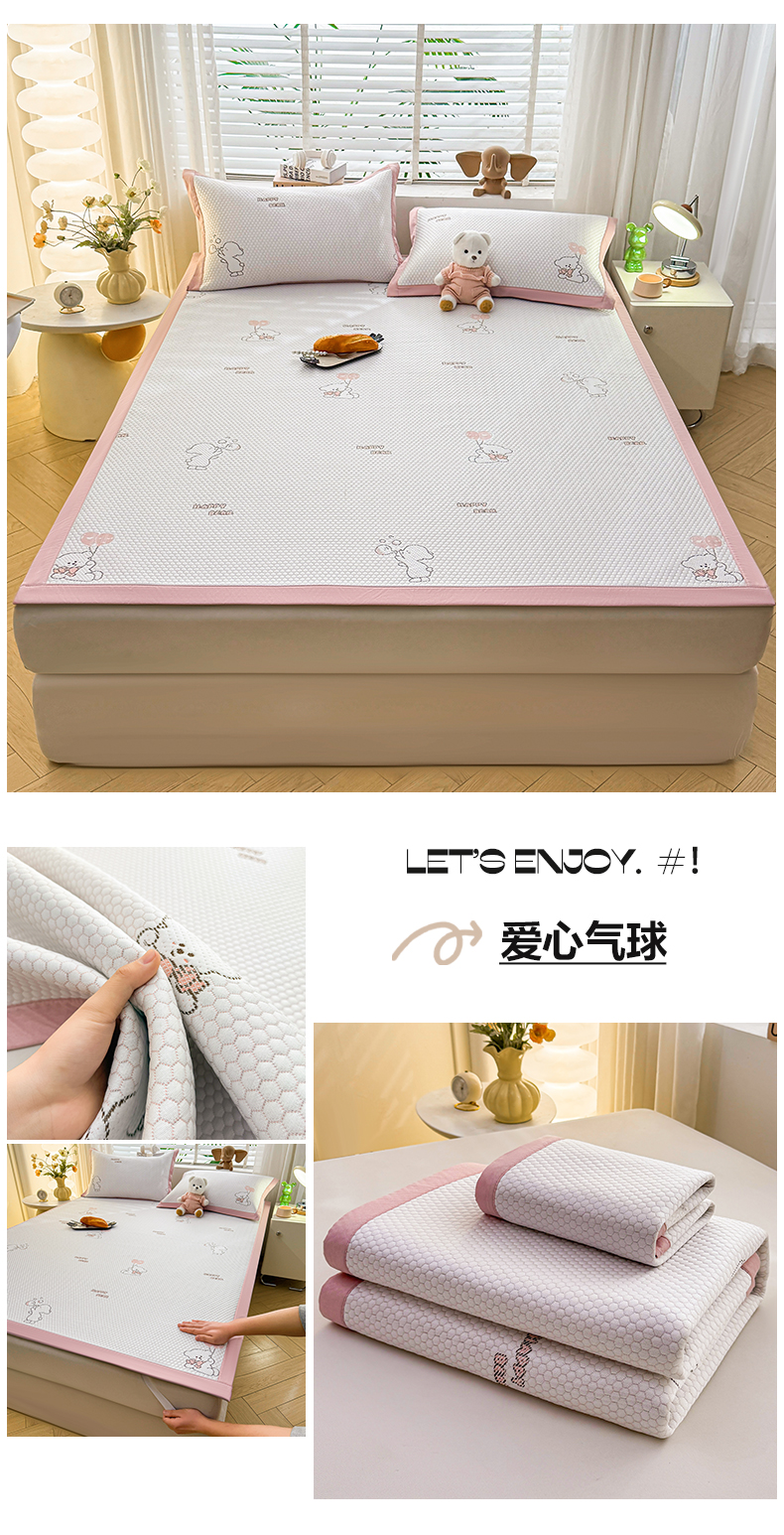 (总)凯罗 2026新款可水洗凉豆豆夏季席子凉席三件套,Hello--熊,爱心小熊--浅粉,敦敦熊--浅粉,敦敦熊--蓝灰,爱心小熊-咖,花儿朵朵--浅粉
