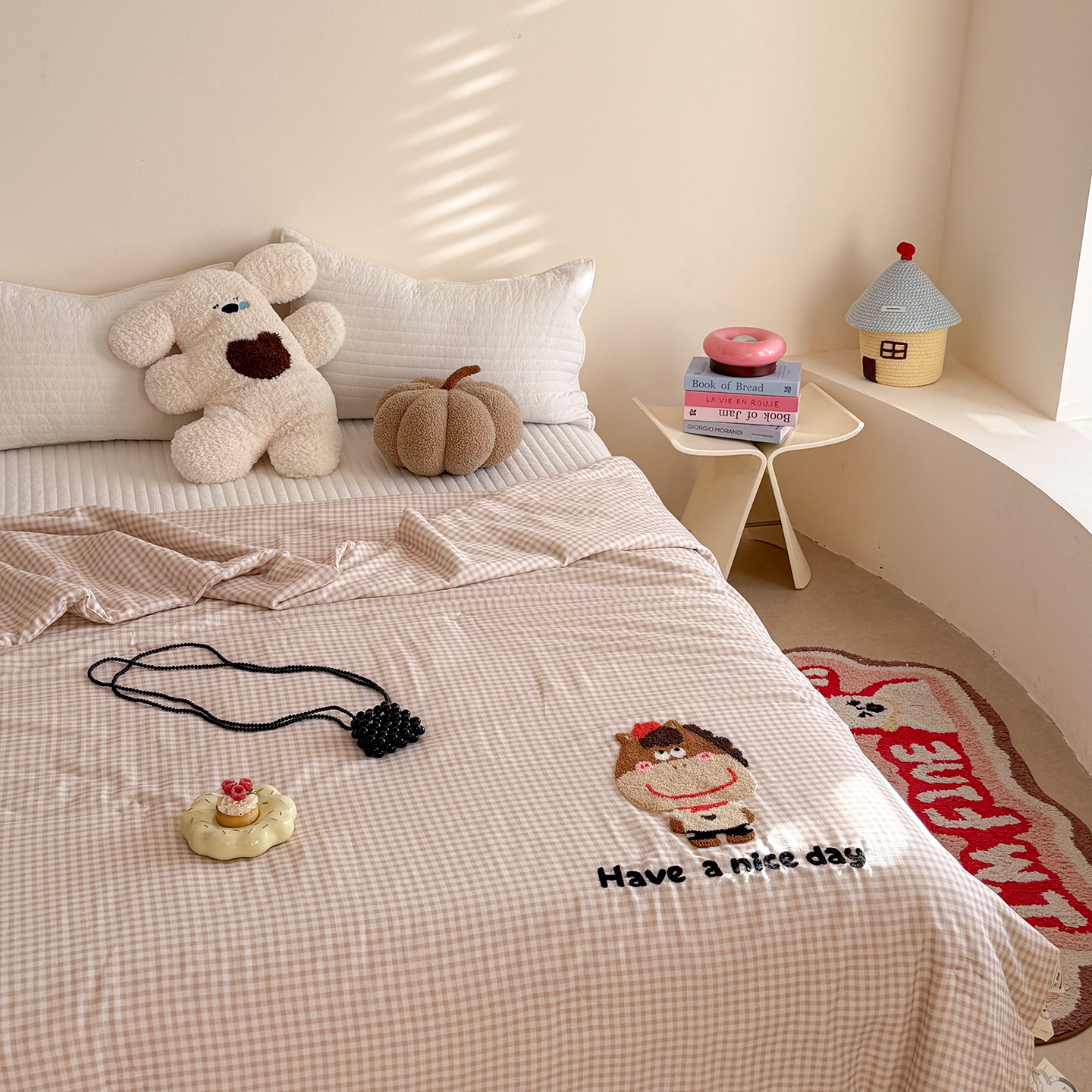 (总)有货 2026新款全棉双层纱毛巾绣夏被春秋被被子被芯-森林萌宠,大耳粉兔,佛系水豚,狐小狸,马小帅,森林精灵,香蕉贝贝,组合