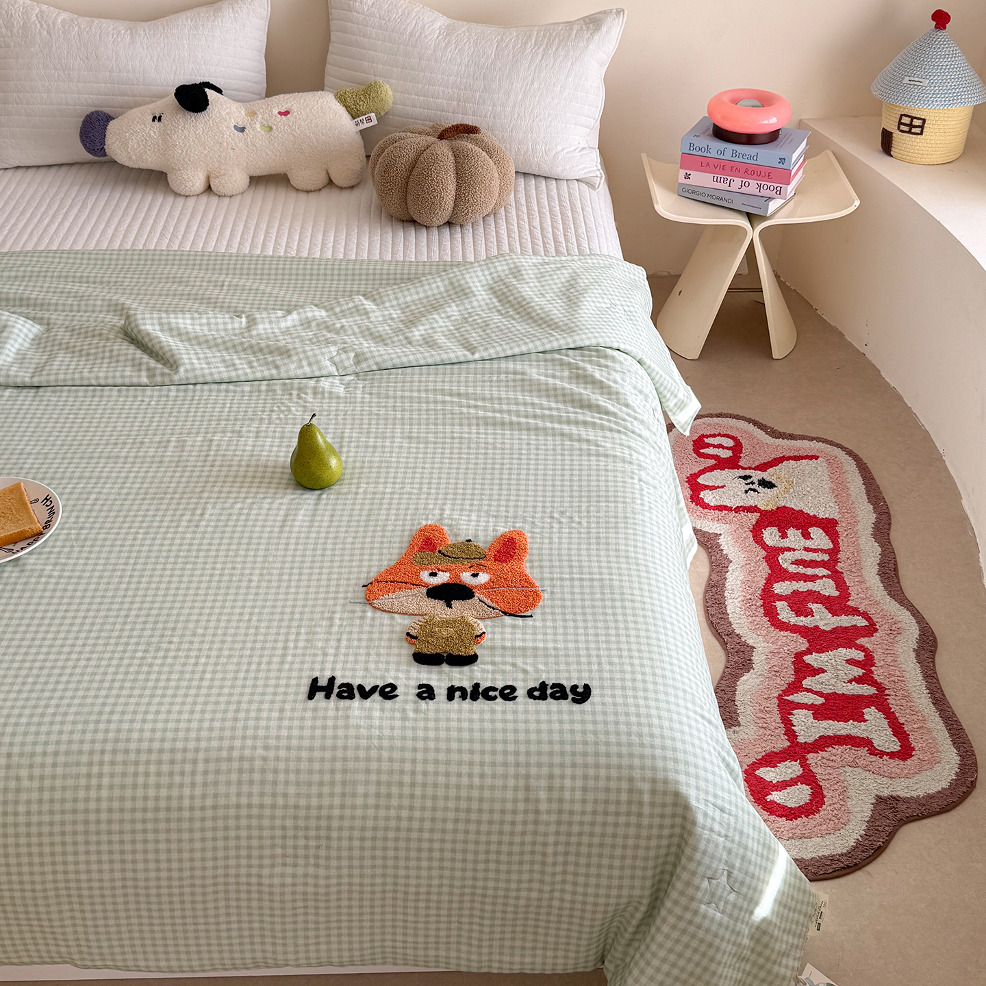 有货 2026新款全棉双层纱毛巾绣夏被春秋被被子被芯-森林萌宠 狐小狸