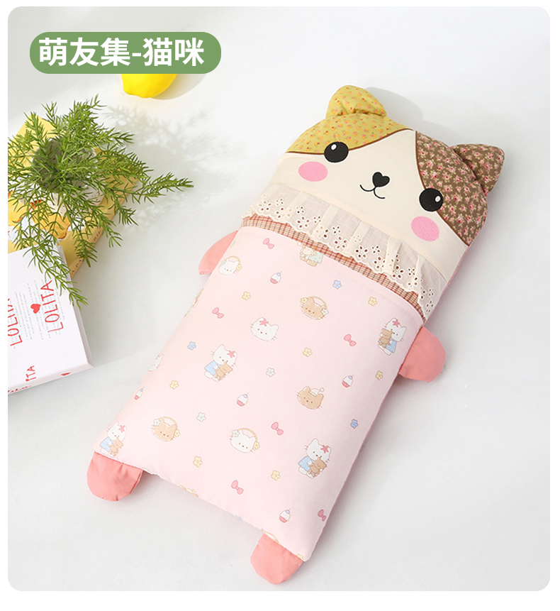 (总)蔻眠 发财猫-全棉卡通荞麦枕头儿童学生成人护颈枕芯,主图,发财猫-蓝色,发财猫-驼色,发财猫-绿色,发财猫-米色