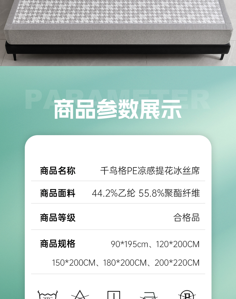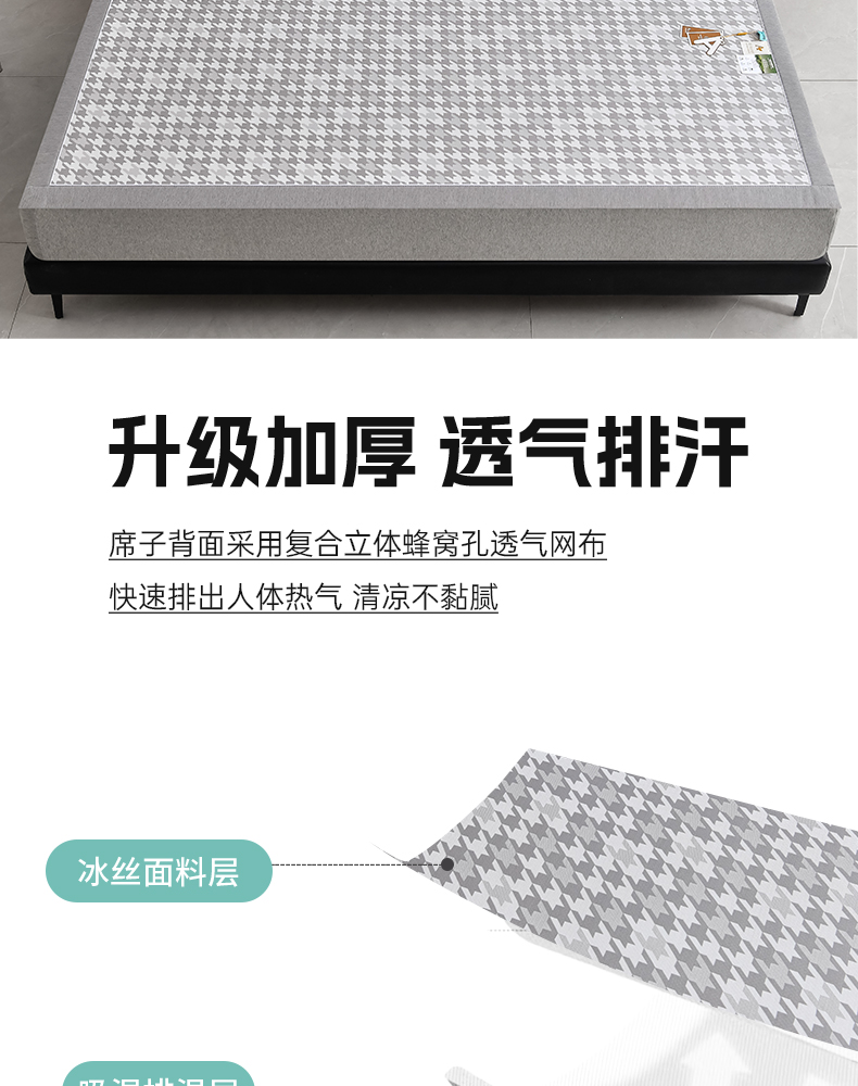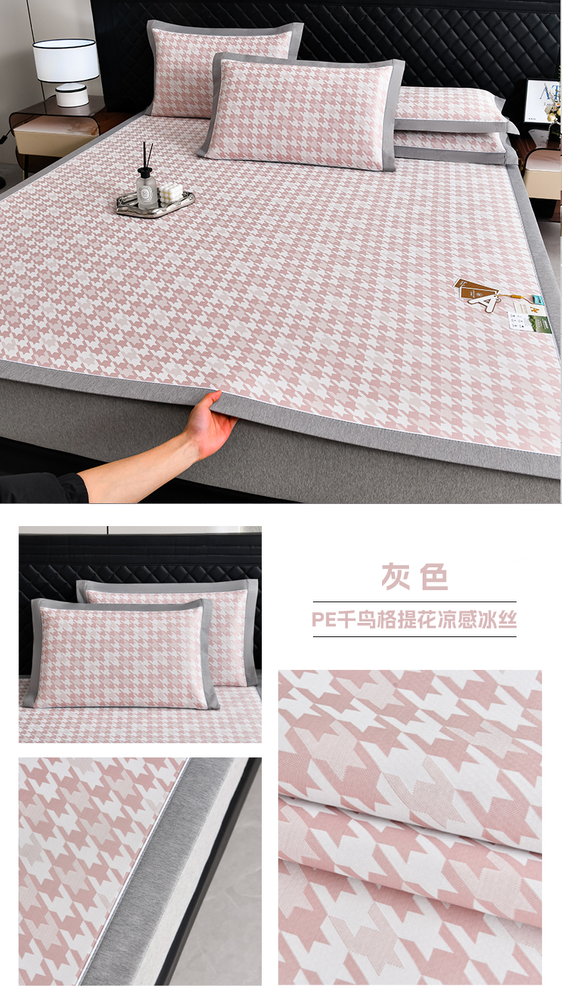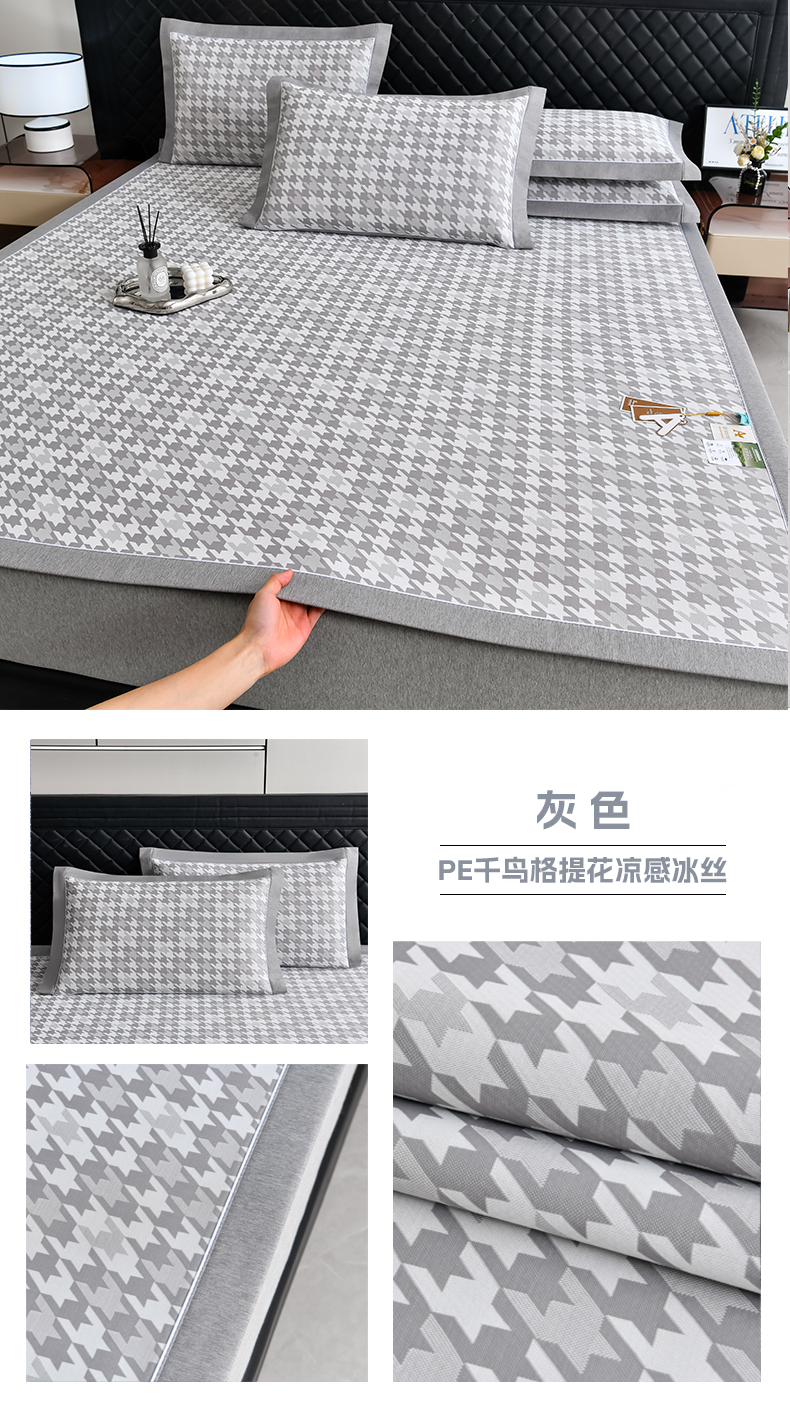 商品名称:小牛席业 2026新款PE千鸟格凉感冰丝席席子凉席 灰色
