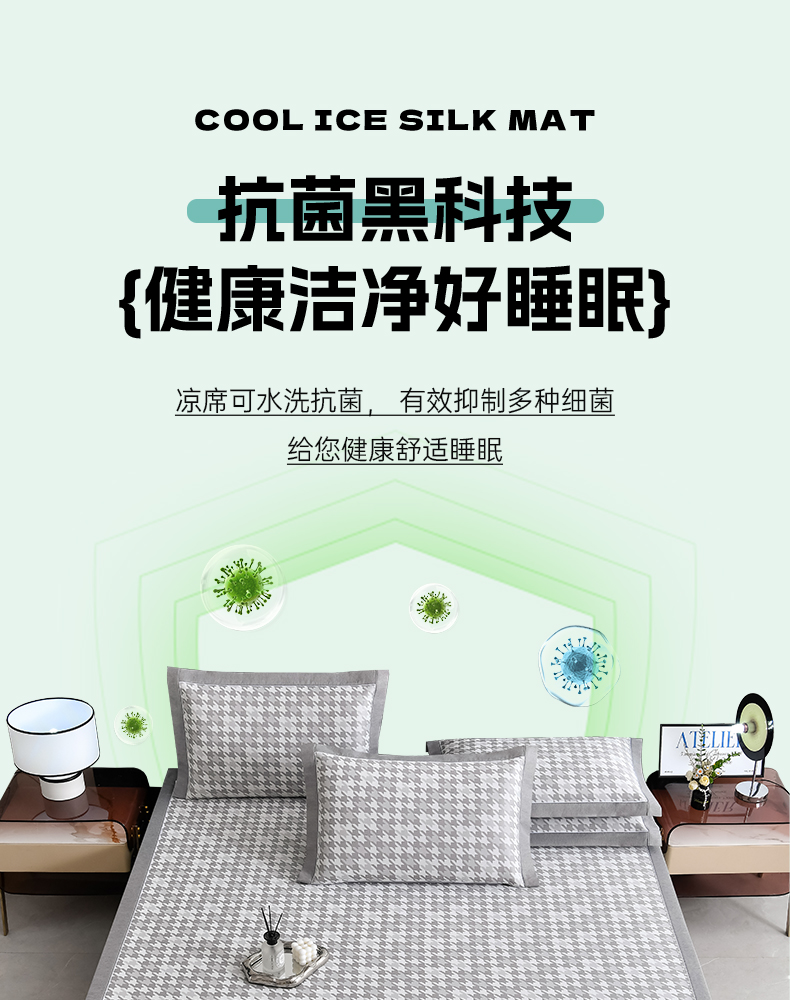 (总)小牛席业 2026新款小冰块大象凉感冰丝席(床笠款)凉席竹席藤席冰藤席乳胶席豆豆席,绿色,粉色,灰色,蓝色,香槟
