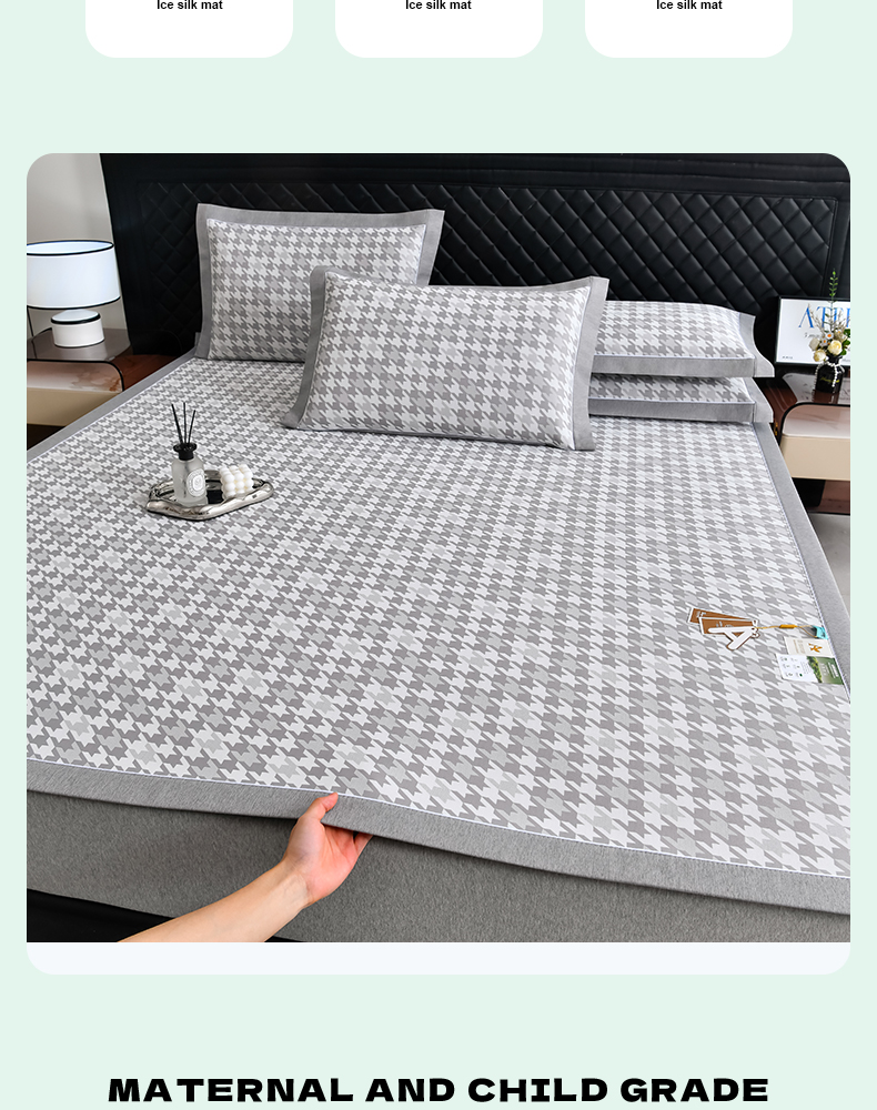 小牛席业 2026新款PE千鸟格凉感冰丝席席子凉席 灰色