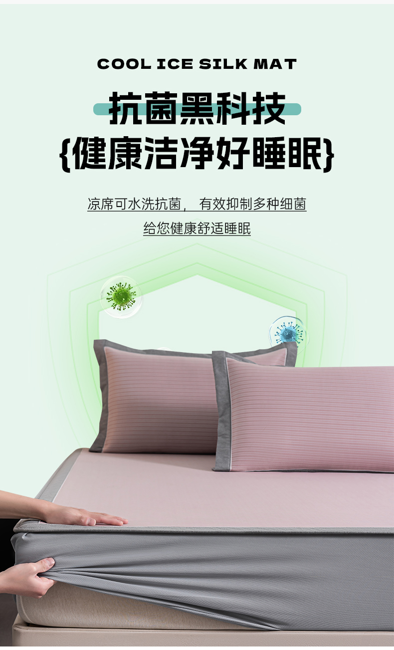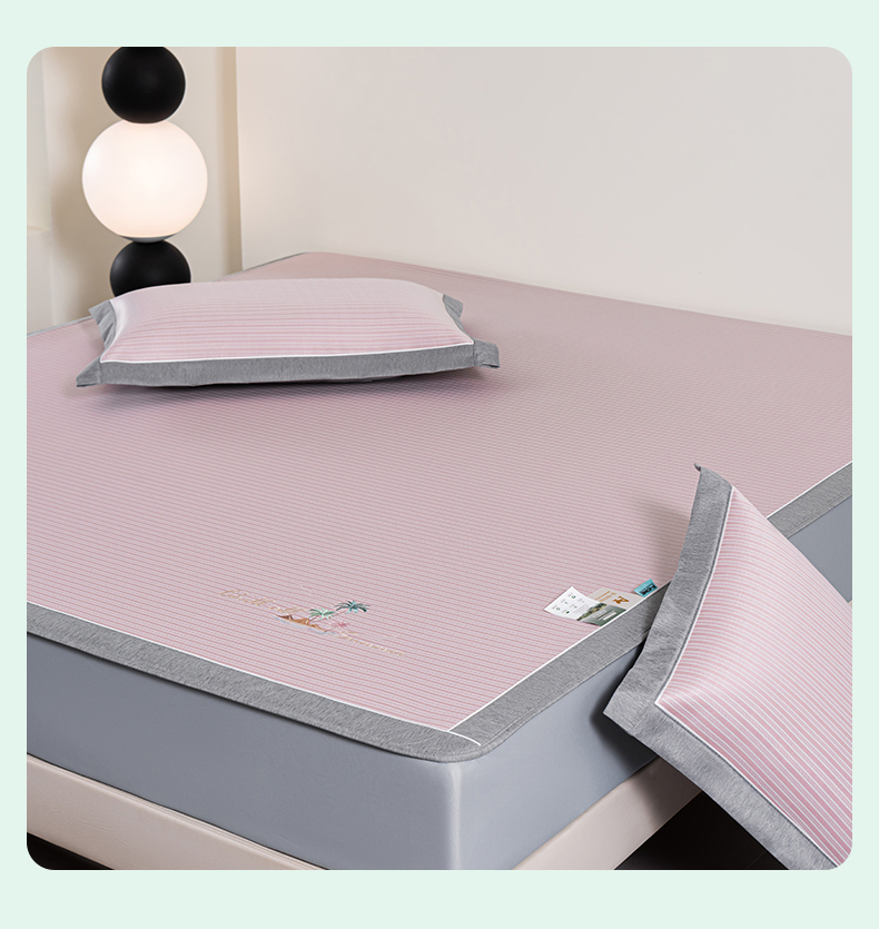 (总)2023新款超精密冰丝席-小斜纹系列-床笠款藤席凉席竹席,粉色,蓝色,绿色,银灰