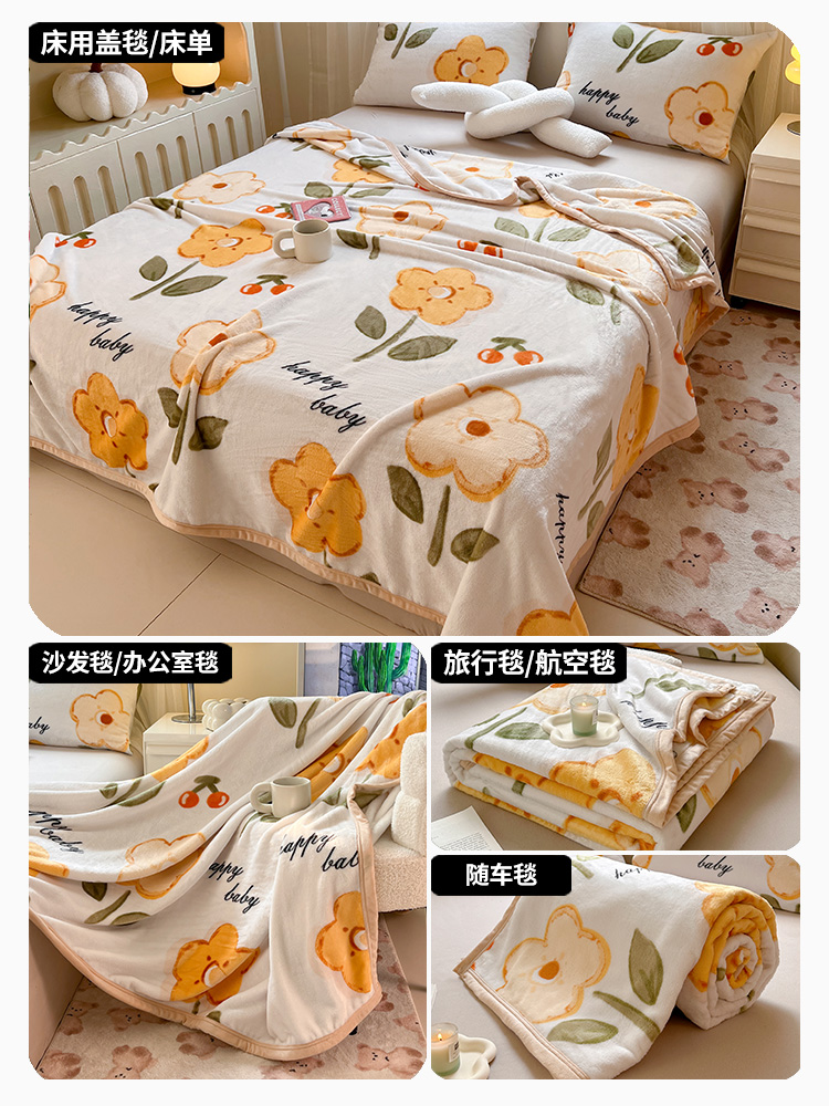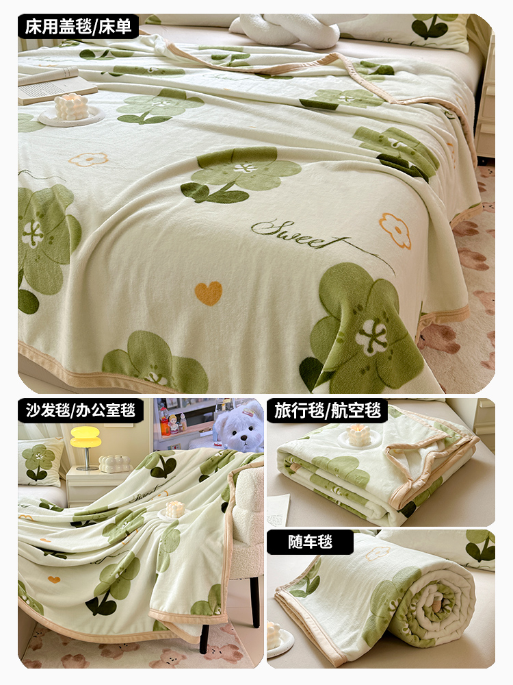 (总)宅部落 2026新款亲肤舒适牛奶绒印花毛毯毯子300克云貂绒盖毯毯子