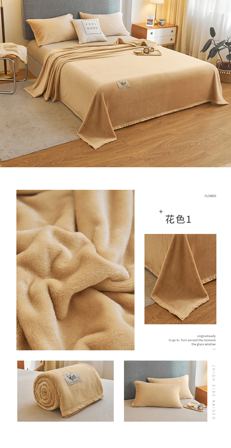 商品名称:宅部落 2026新款云貂绒纯色毯子300克毛毯法莱绒盖毯牛奶绒毛毯 驼色