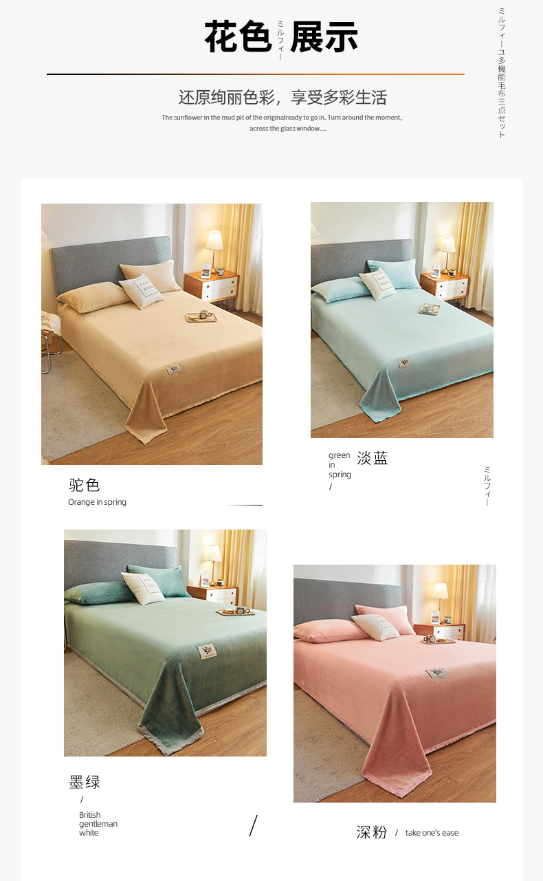 (总)宅部落 2026新款云貂绒纯色毯子300克毛毯法莱绒盖毯牛奶绒毛毯,组合图(仅供展示不可下单),淡蓝,豆沙,墨绿,浅粉,深粉,深灰,深蓝,驼色
