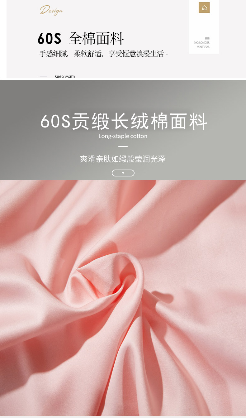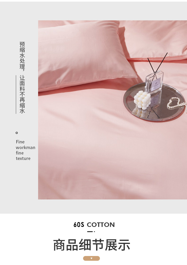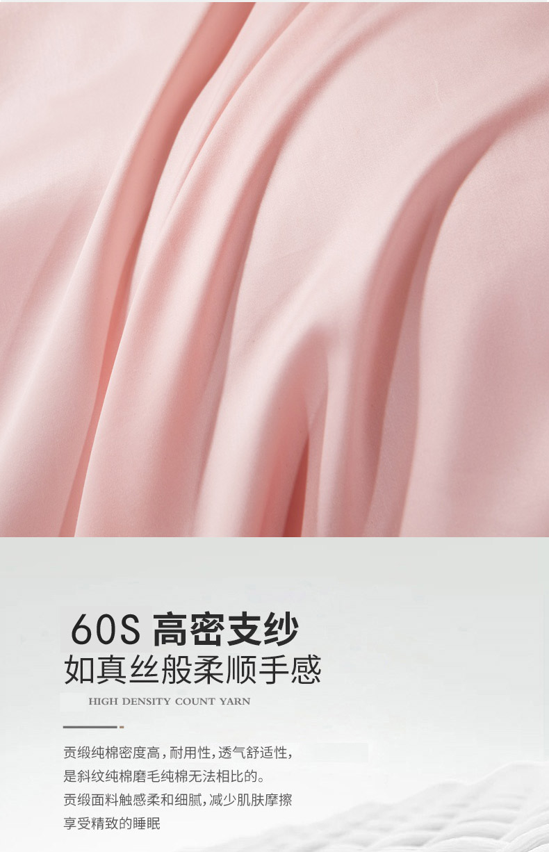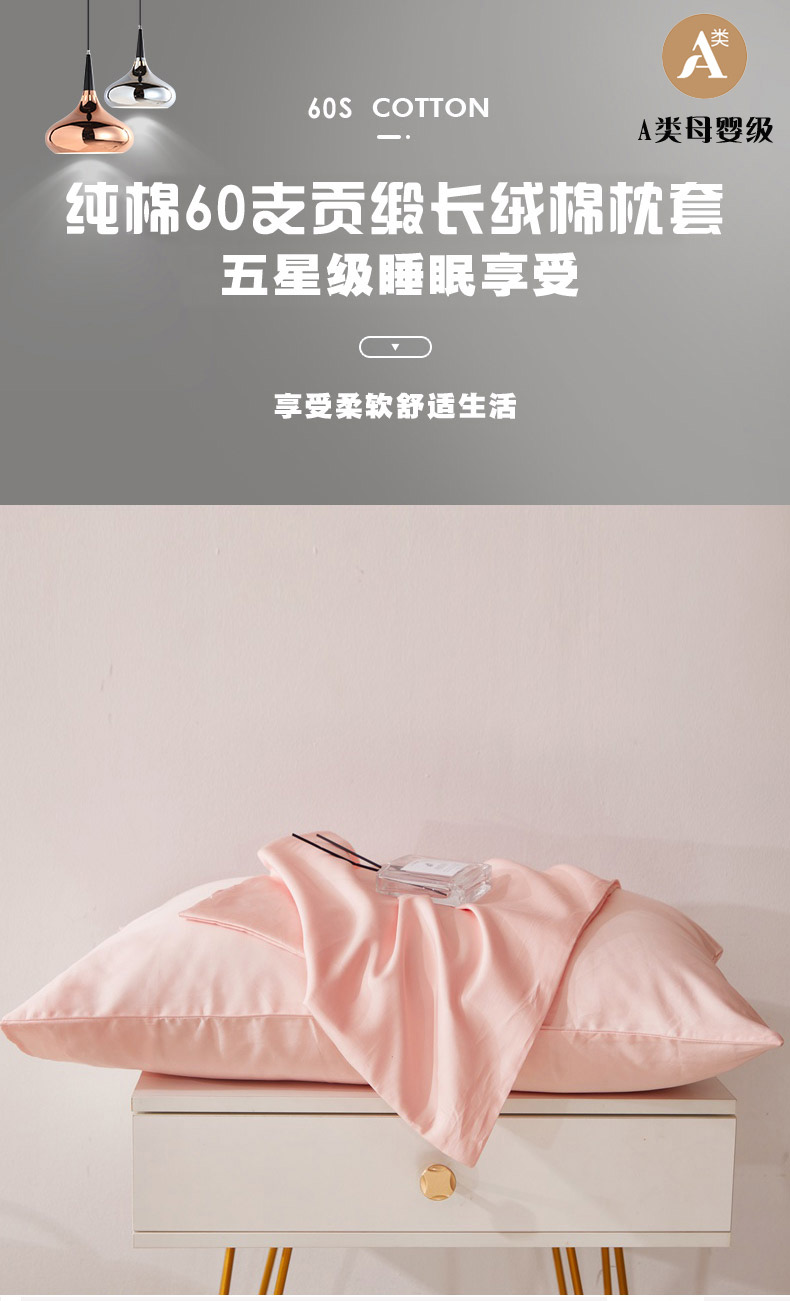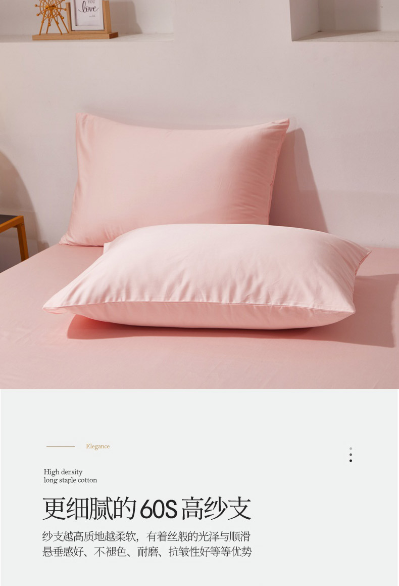 商品名称:晶缦家纺 2026新款全棉A类纯棉60支贡缎长绒棉纯色单枕套单品枕套枕套单件 琳琅-粉玉色