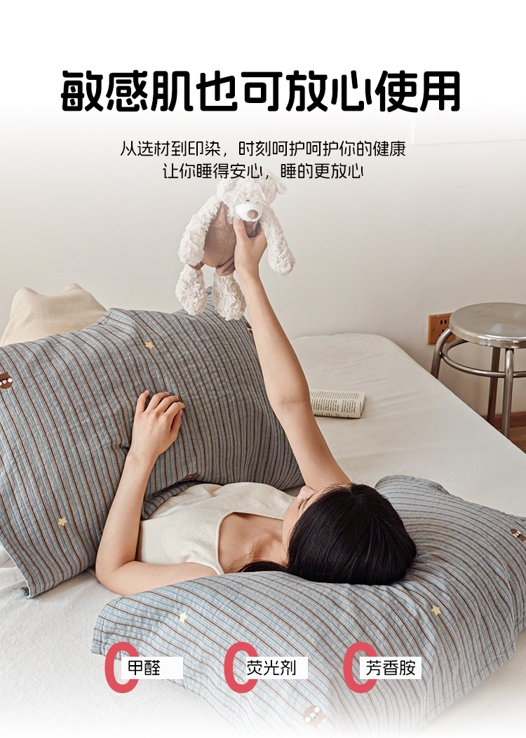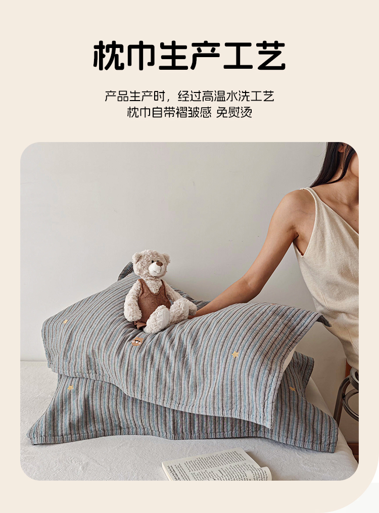 (总)沐瑟家纺 2026新款A类全棉三层色织提花纱布日系纱布枕巾-彩条,彩条 -红蓝,彩条-红绿