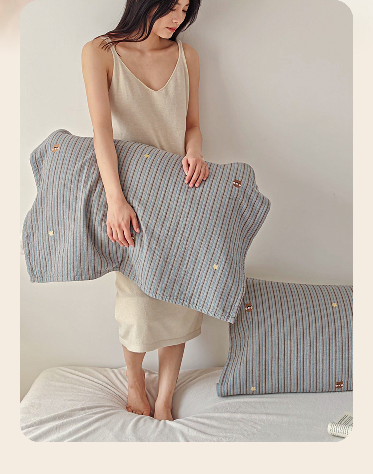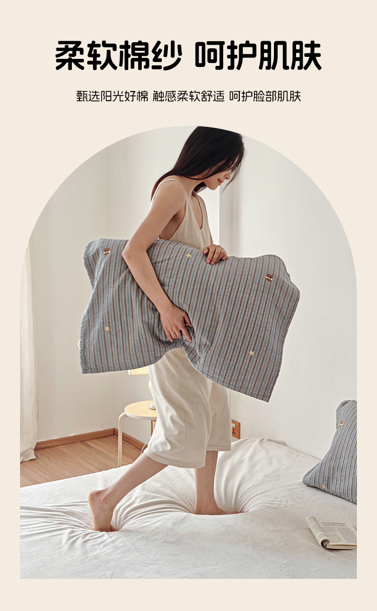 • 91家纺网 家纺一手货源 找家纺 (总)沐瑟家纺 2026新款A类全棉三层色织提花纱布日系纱布枕巾-彩条,彩条 -红蓝,彩条-红绿