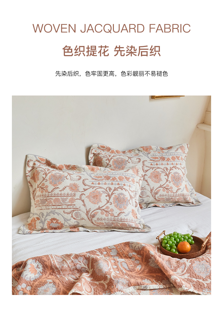 (总)沐瑟家纺 2025新款简约风多功能纱布盖毯纱布毯子毛巾被床盖沙发巾单毯枕巾枕套三件套,H本色,H橙色,H咖色,大马士革本色