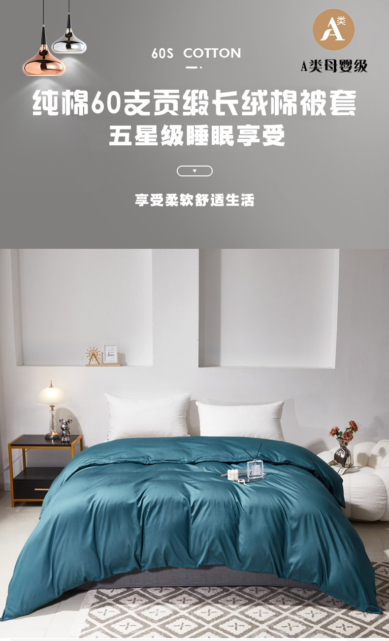 • 91家纺网 家纺一手货源 找家纺 晶缦家纺 2026新款全棉A类纯棉60支贡缎长绒棉纯色单被套单品被套被套单件 琳琅-猫眼绿