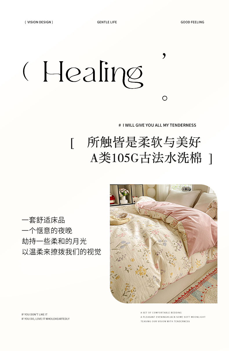 商品名称:纽缦家纺 2026新款A类105g仿棉四件套古法水洗棉单被套 聆风