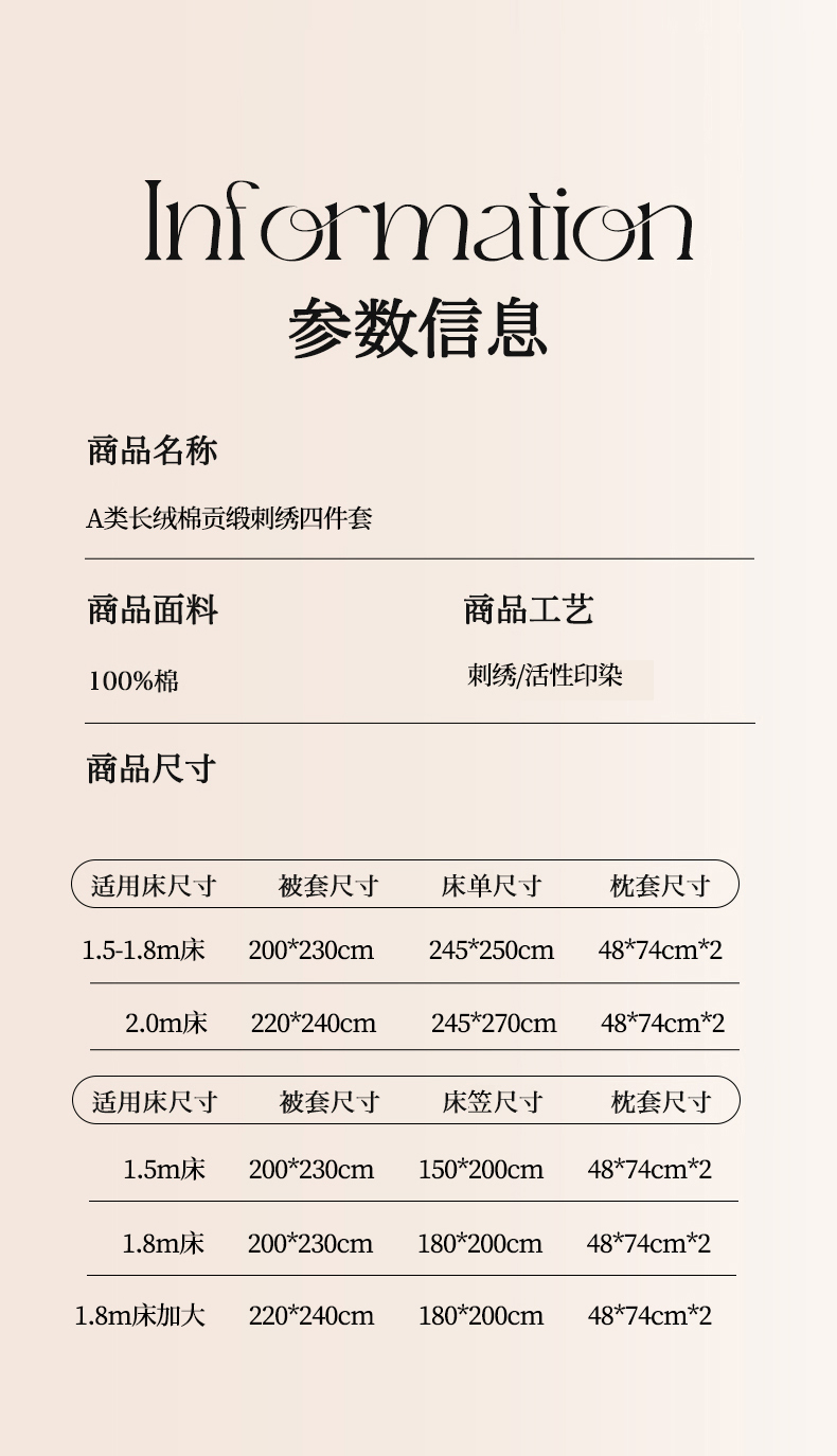 • 床品工艺: 刺绣