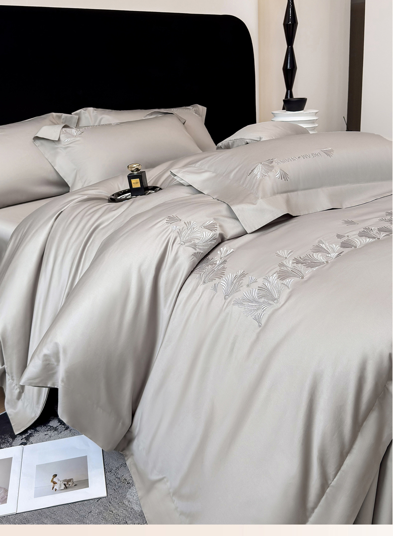 (总)星蕴家纺 2026新款双股长绒棉全棉纯棉刺绣四件套-柏林系列,柏林 贵族白,柏林 星空灰,柏林 云山蓝,柏林 香槟金,柏林 可可粉