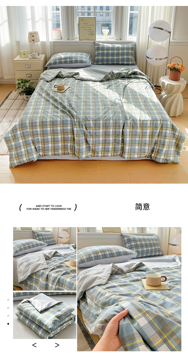 纽缦家纺 2026新款水洗棉简约格子风夏被 朴雅