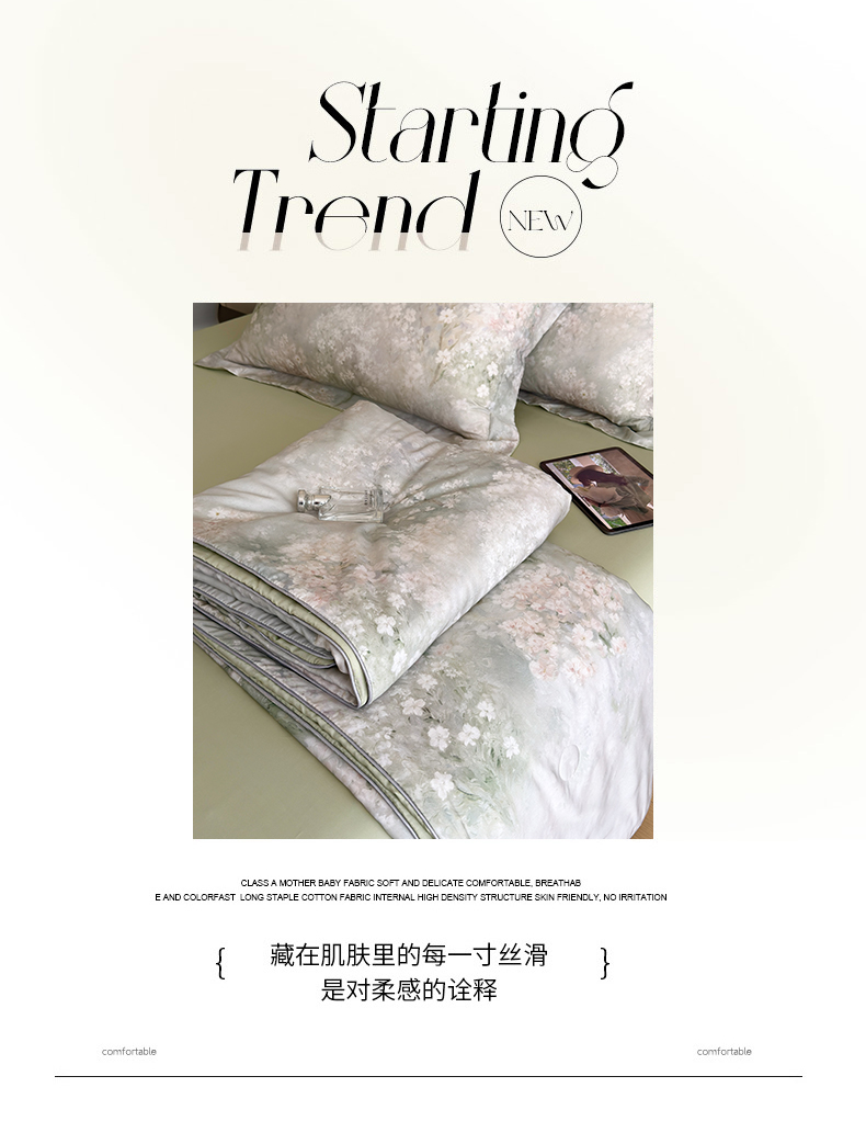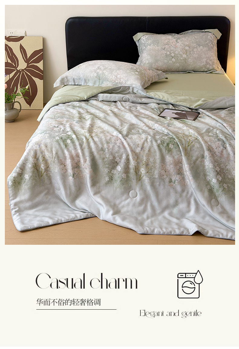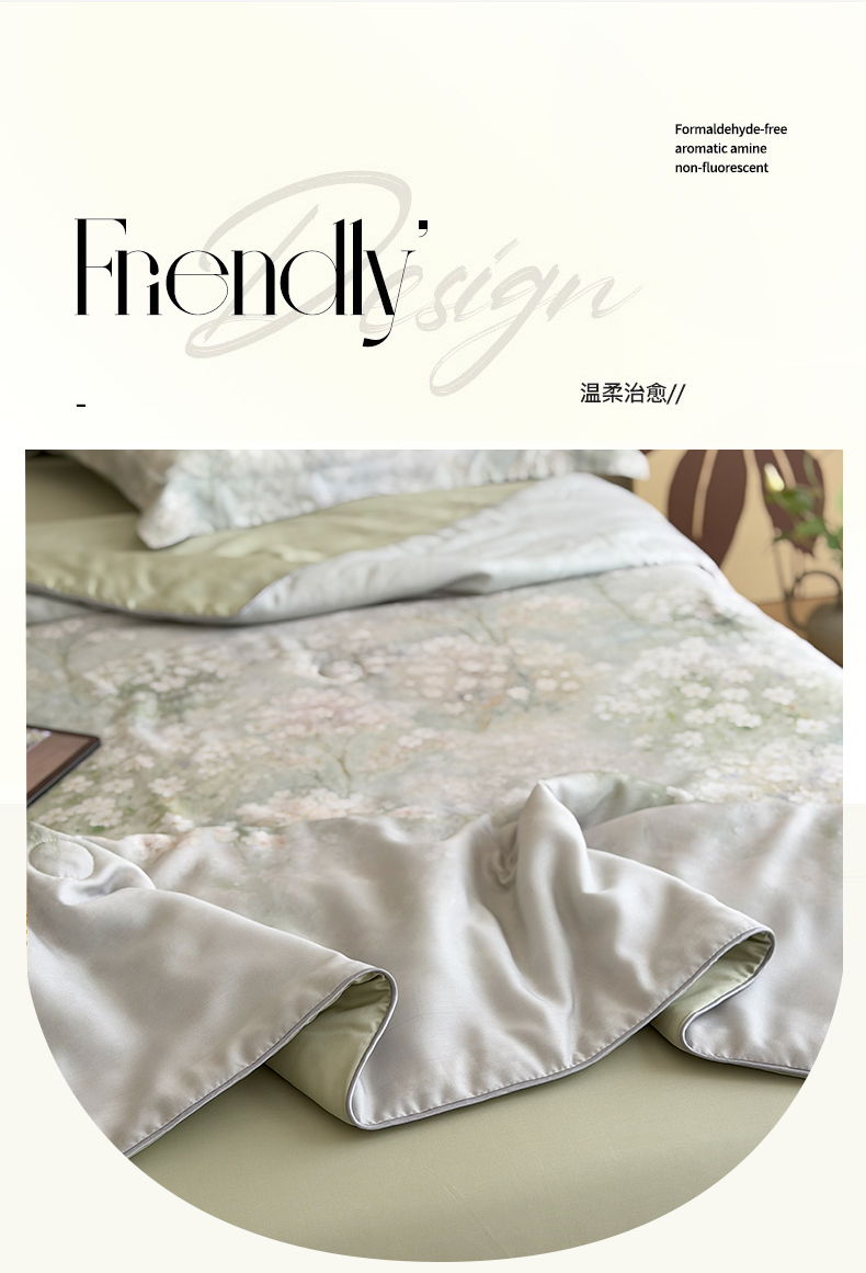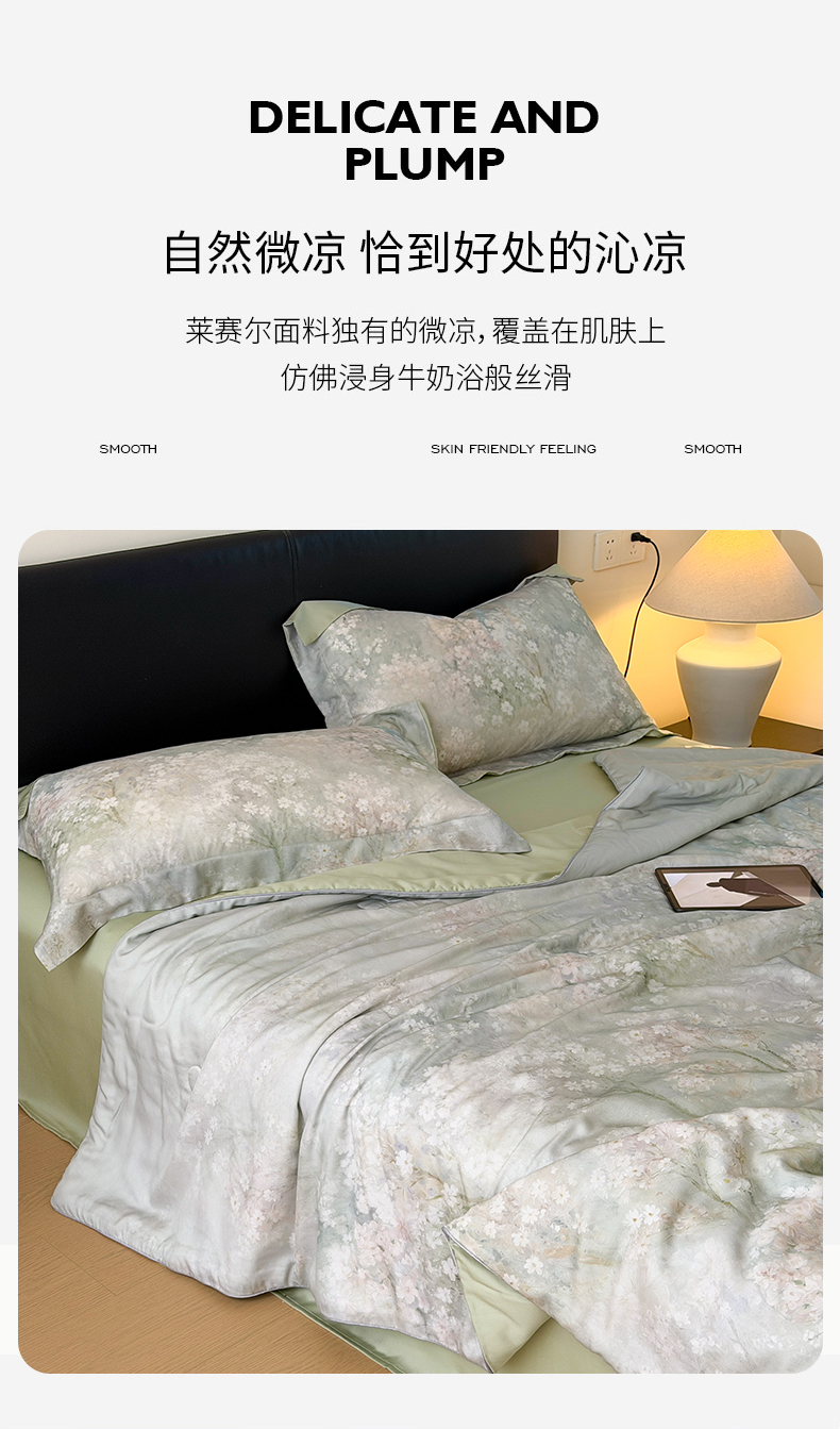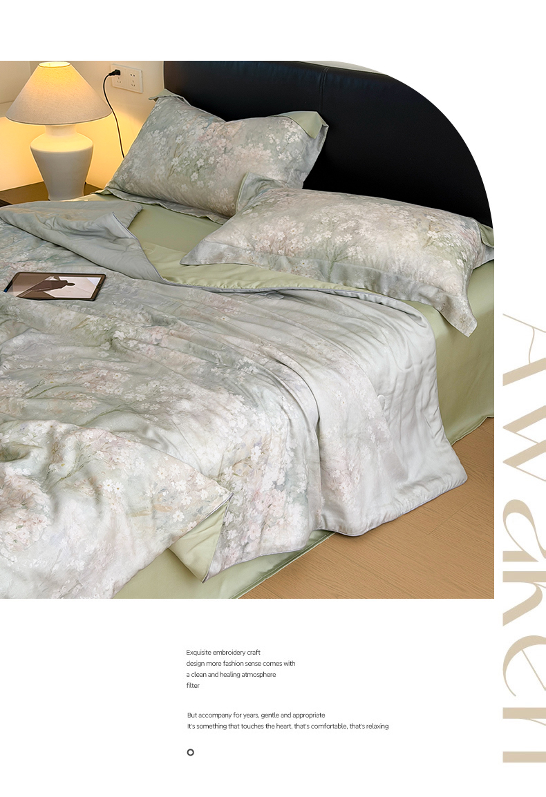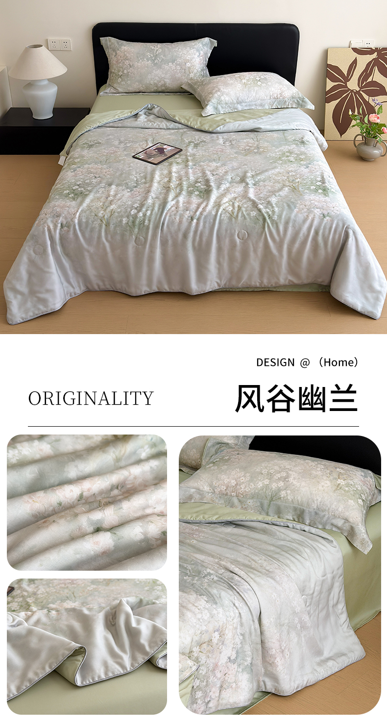 当前位置: 91家纺网 > 商品网购 > 床品套件 > 四件套 > 夏被四件套 > 优彩 2026春夏新款50天丝夏被莱赛尔纤维夏被四件套天丝夏被单夏被单床笠单床单(控价单夏被不低于150) 风谷幽兰