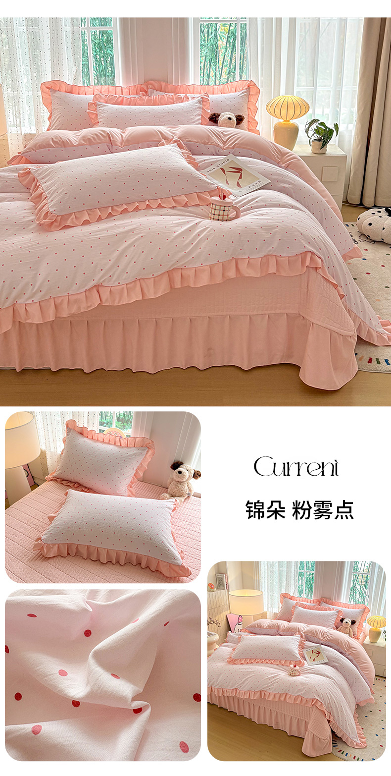 当前位置: 91家纺网 > 商品网购 > 床品套件 > 四件套 > 其它四件套 > 铠畅 2026春夏新款 锦朵系列韩版水洗棉小清新古棉床盖四件套 锦朵 粉雾点