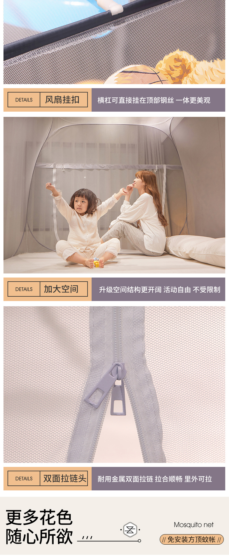 (总)豪梦园蚊帐工厂店 2026新款免安装高档布艺+防咬层布边款蒙古包蚊帐,欢乐小熊,宇宙人,太空熊,英文绿,乐符棕,心相事橙