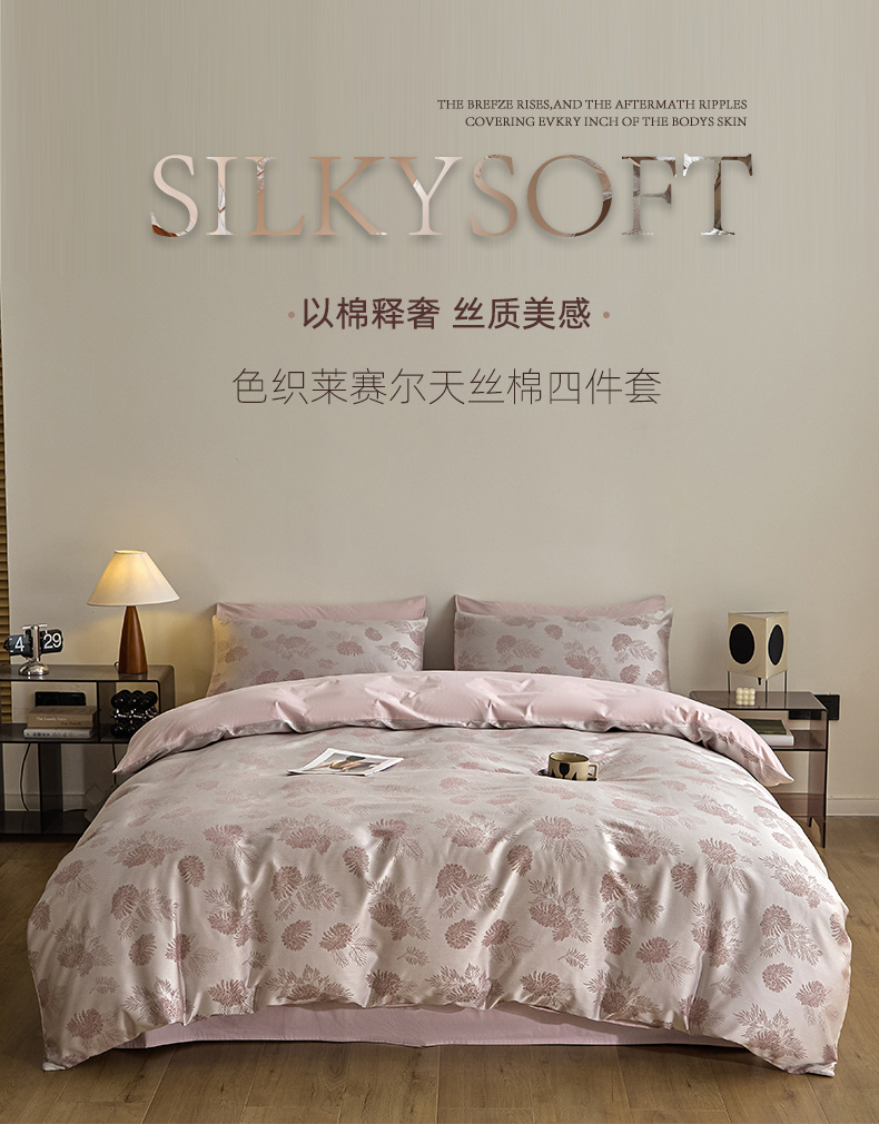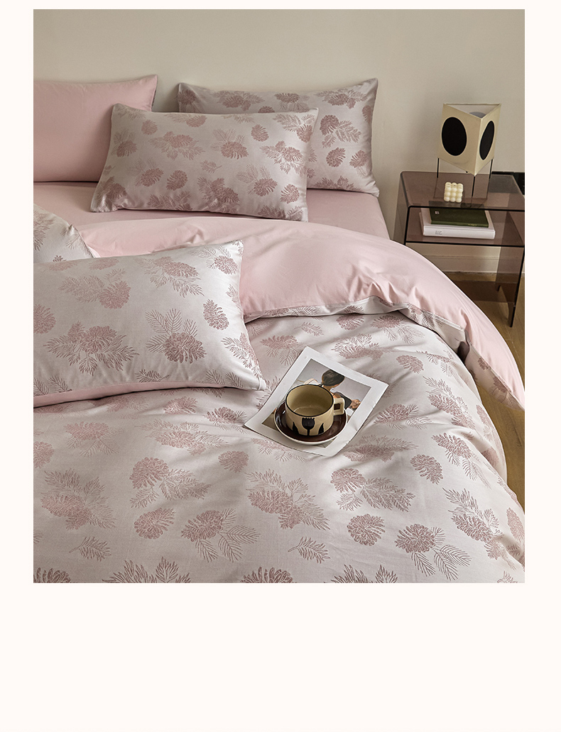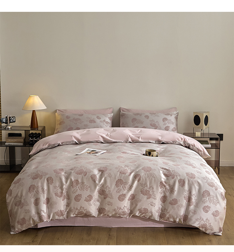 当前位置: 91家纺网 > 商品网购 > 床品套件 > 四件套 > 色织四件套 > 琪格格纺织 2026新款色织天丝棉提花四件套 松林果-粉紫