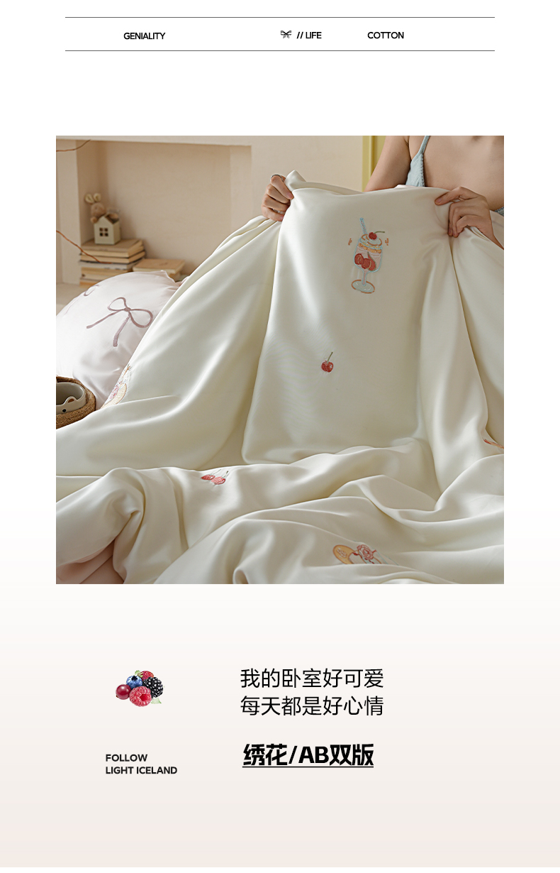 当前位置: 91家纺网 > 商品网购 > 床品套件 > 四件套 > 莱赛尔四件套 > (总)简纯主义 2026新款60s奥地利进口兰精天丝四件套-泡泡莓果