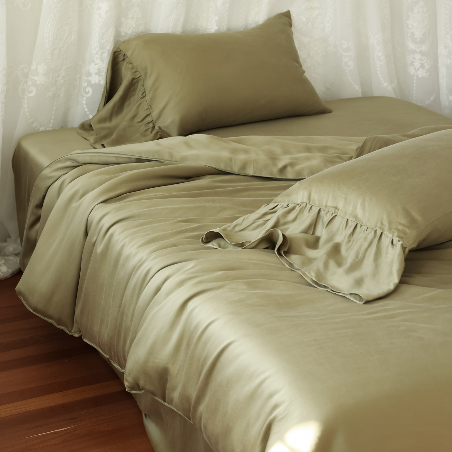 初拾 2026新款60支水洗兰精天丝”慵懒风“四件套-美人鱼 美人鱼-茉香奶绿
