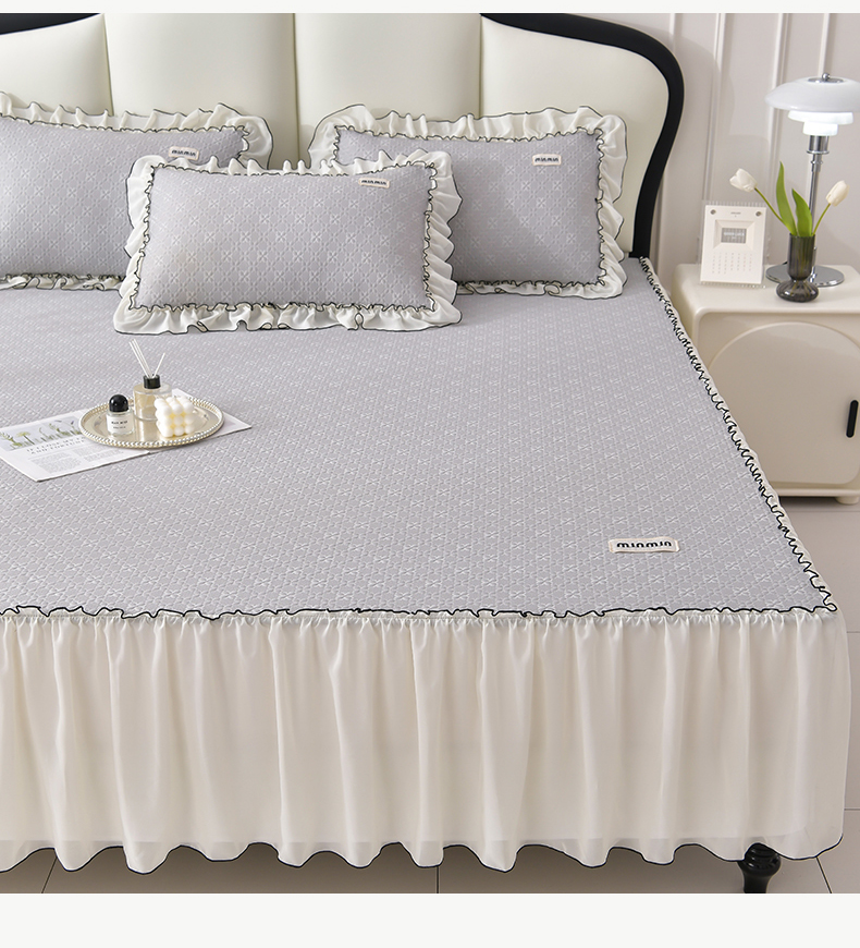 (总)小牛席业 2026春夏新款【实拍风格】PE凉感凉席席子-轻奢赫本(床笠款),轻奢赫本-灰色,轻奢赫本-粉色,轻奢赫本-蓝色,轻奢赫本-香槟