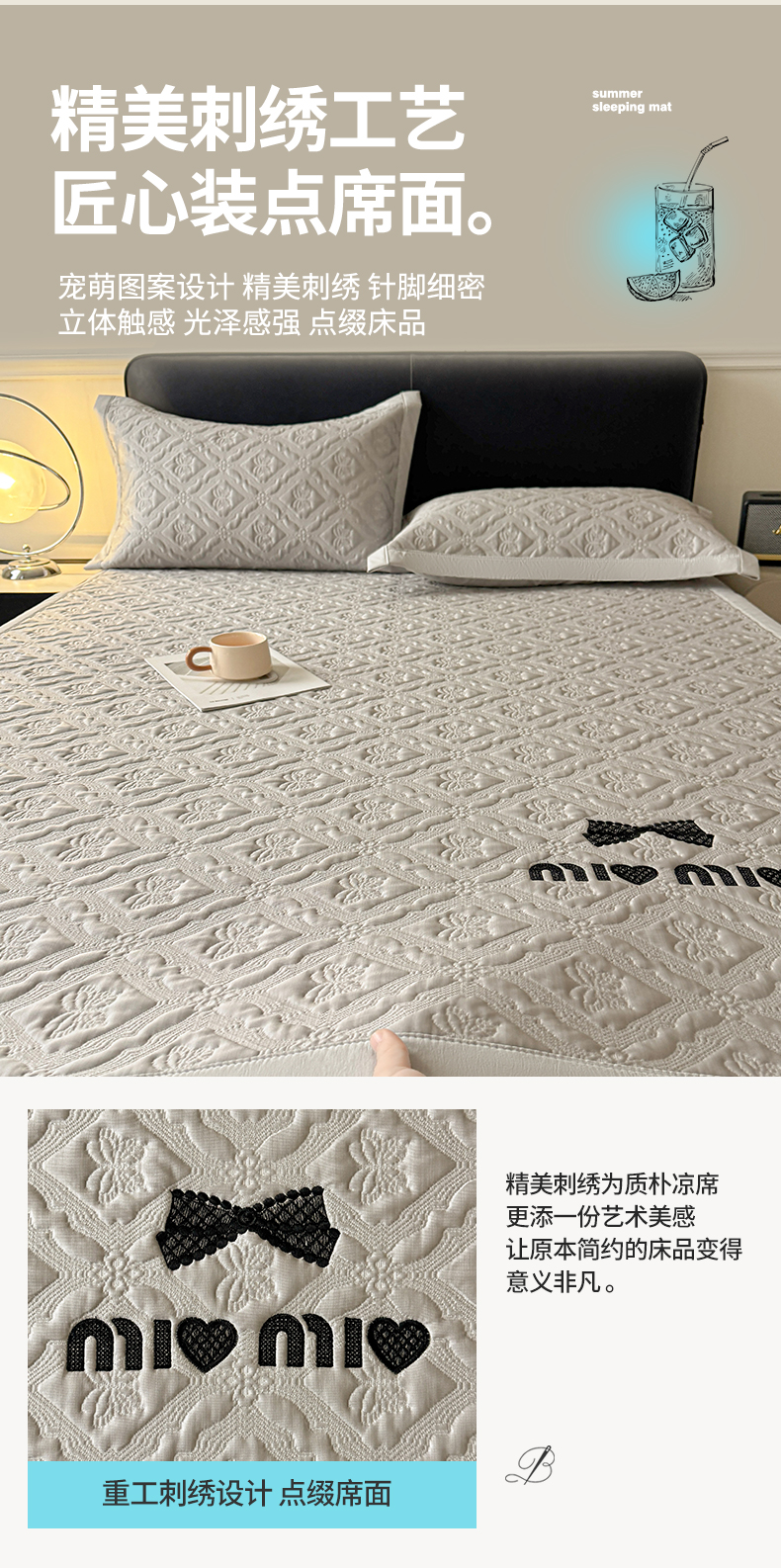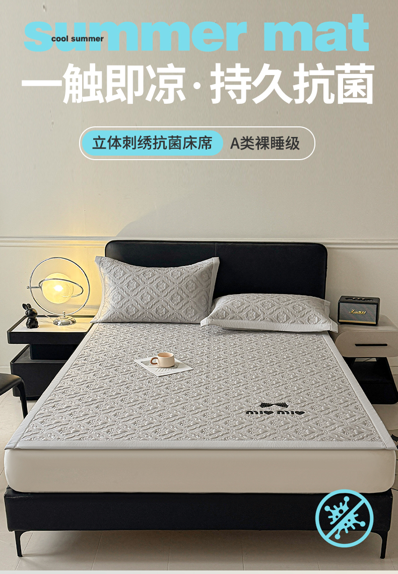 (总)居易简 2026新款刺绣实拍爆款凉豆豆凉席100%PE乙伦绣花可水洗床席席子-床笠款,蝶韵 冰浅灰-床笠款,蝶韵 冰清绿-床笠款,蝶韵 冰雾蓝-床笠款,蝶韵 冰雾紫-床笠款,蝶韵 冰云粉-床笠款,菱格 冰浅灰-床笠款,菱格 冰清绿-床笠款