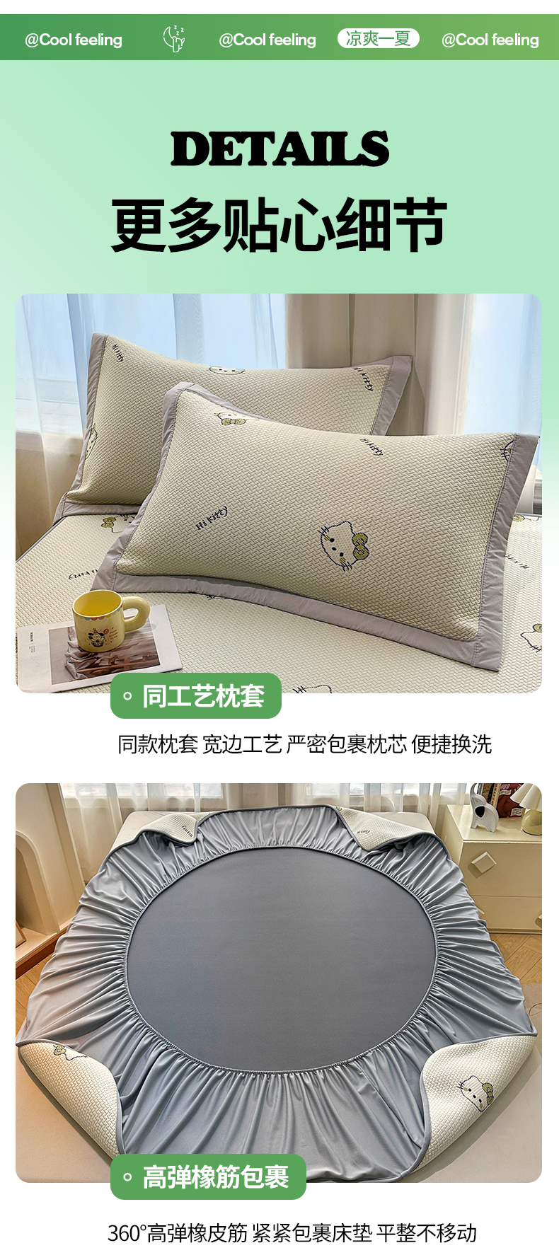 商品名称:玉相逢 2026新款卡通实拍小红书爆款凉豆豆凉席100%PE 乙纶凉感可水洗床席席子-床笠款 梦境KT